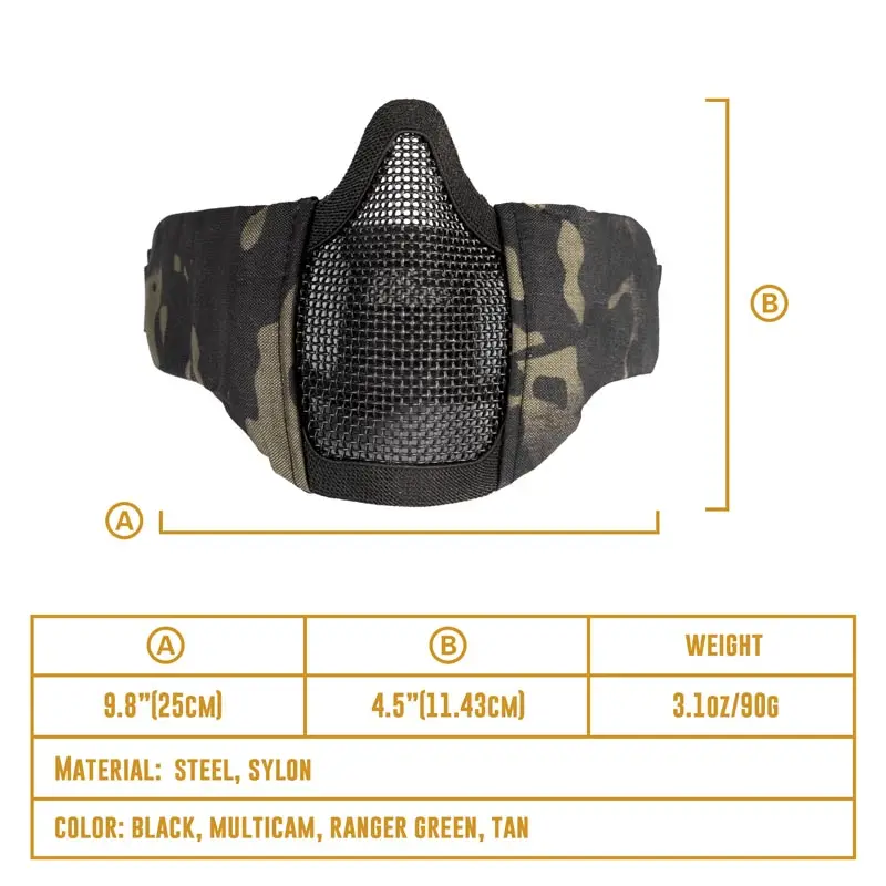 OneTigris Складная Сетчатая Маска на половину лица в Военном Стиле Удобная Регулируемая тактическая защитная маска для нижней части лица