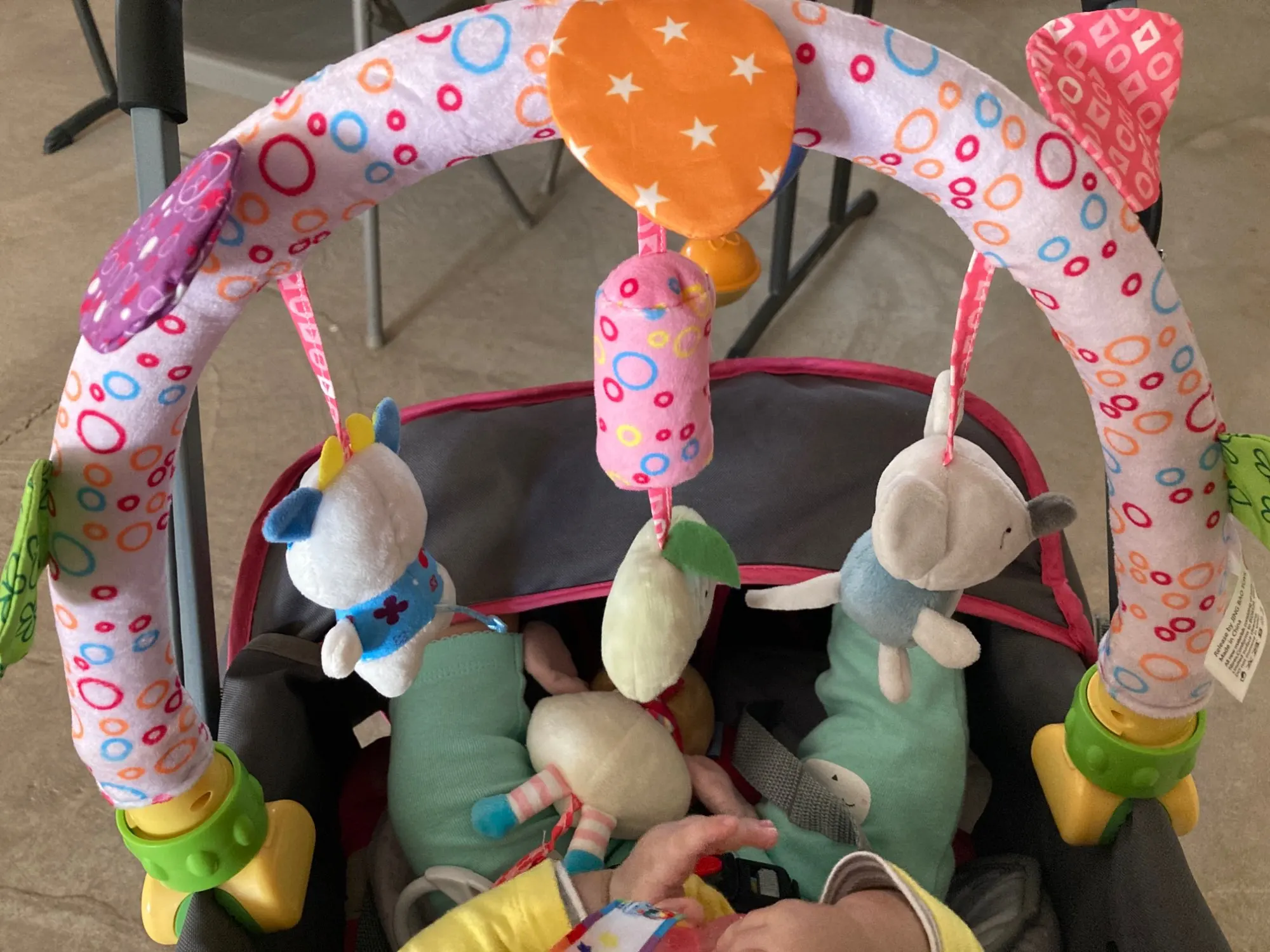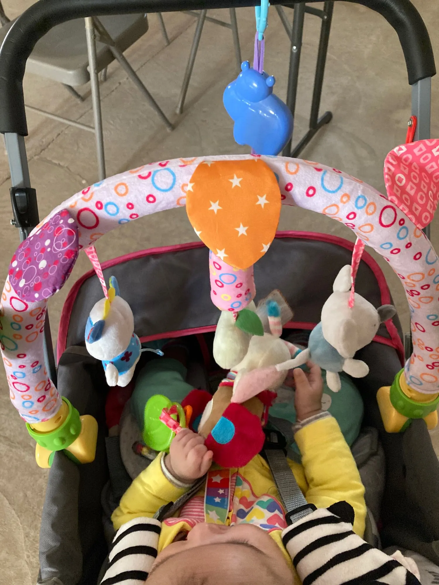 Очень быстрая доставка! Дуга качественная, зажимы крепления подойдут и для кроватки и для коляски, и для детского шезлонга. Ребёнку очень понравилась!