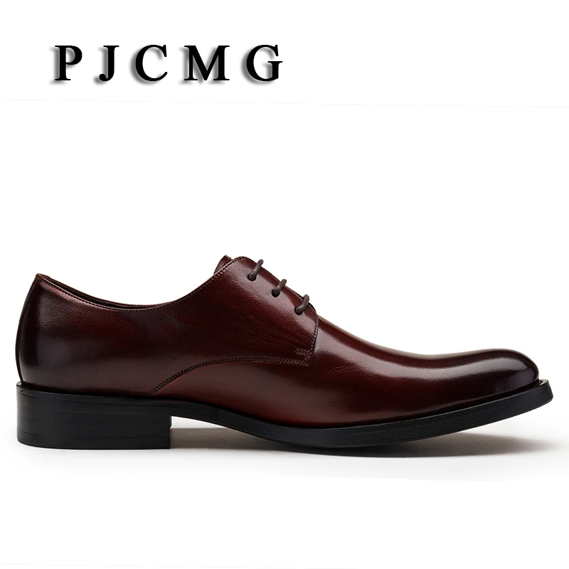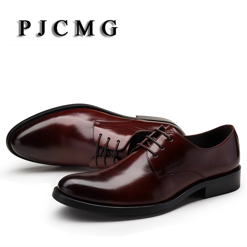 PJCMG модные красныечерные оксфорды мужские деловые на шнуровке из натуральной кожи с острым носком офисные строгие мужские свадебные туфли