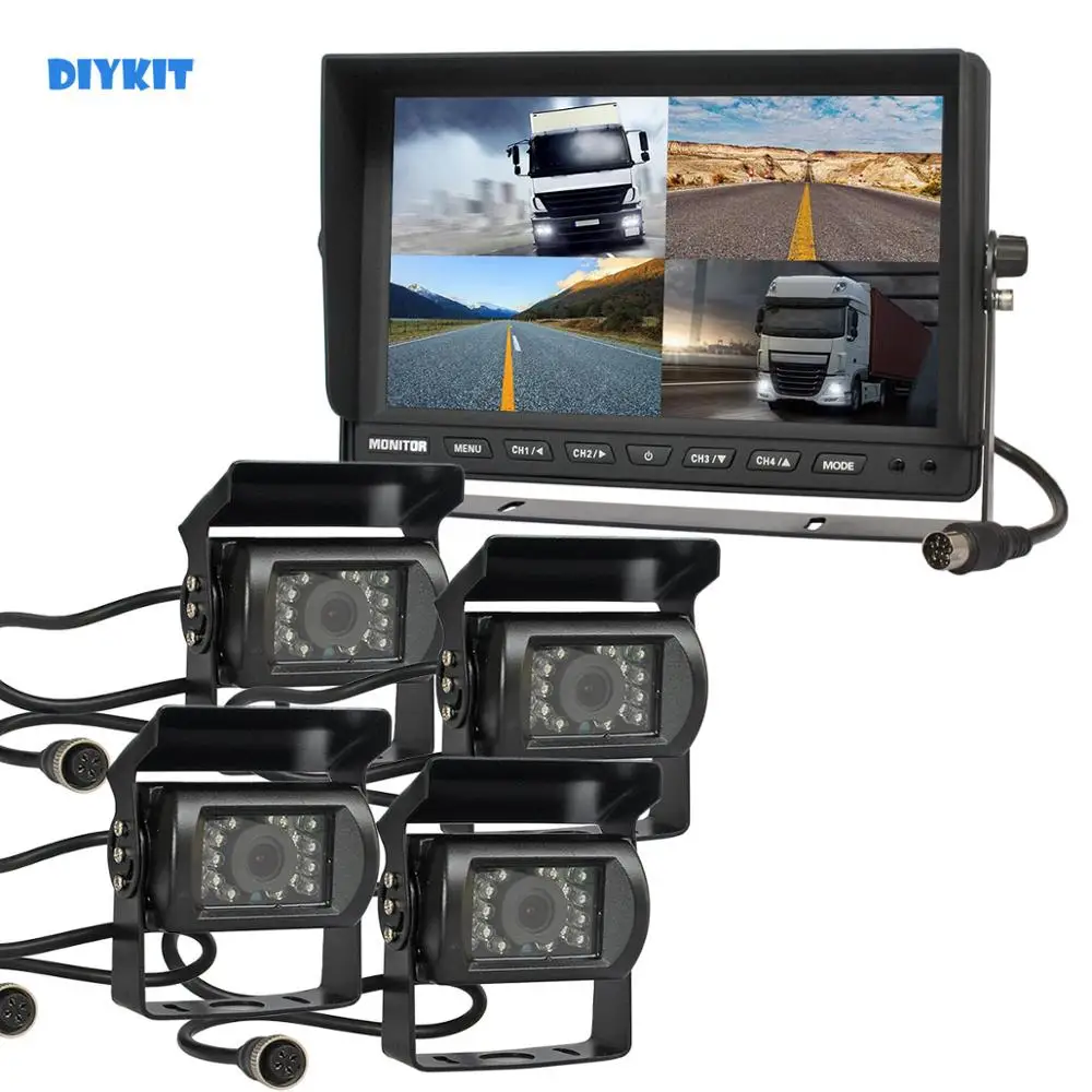 Камера заднего вида DIYKIT, водонепроницаемая 4-дюймовая камера заднего вида с разрезом, 4 камерами, CCD и ИК ночным видением, для грузовиков и автобусов