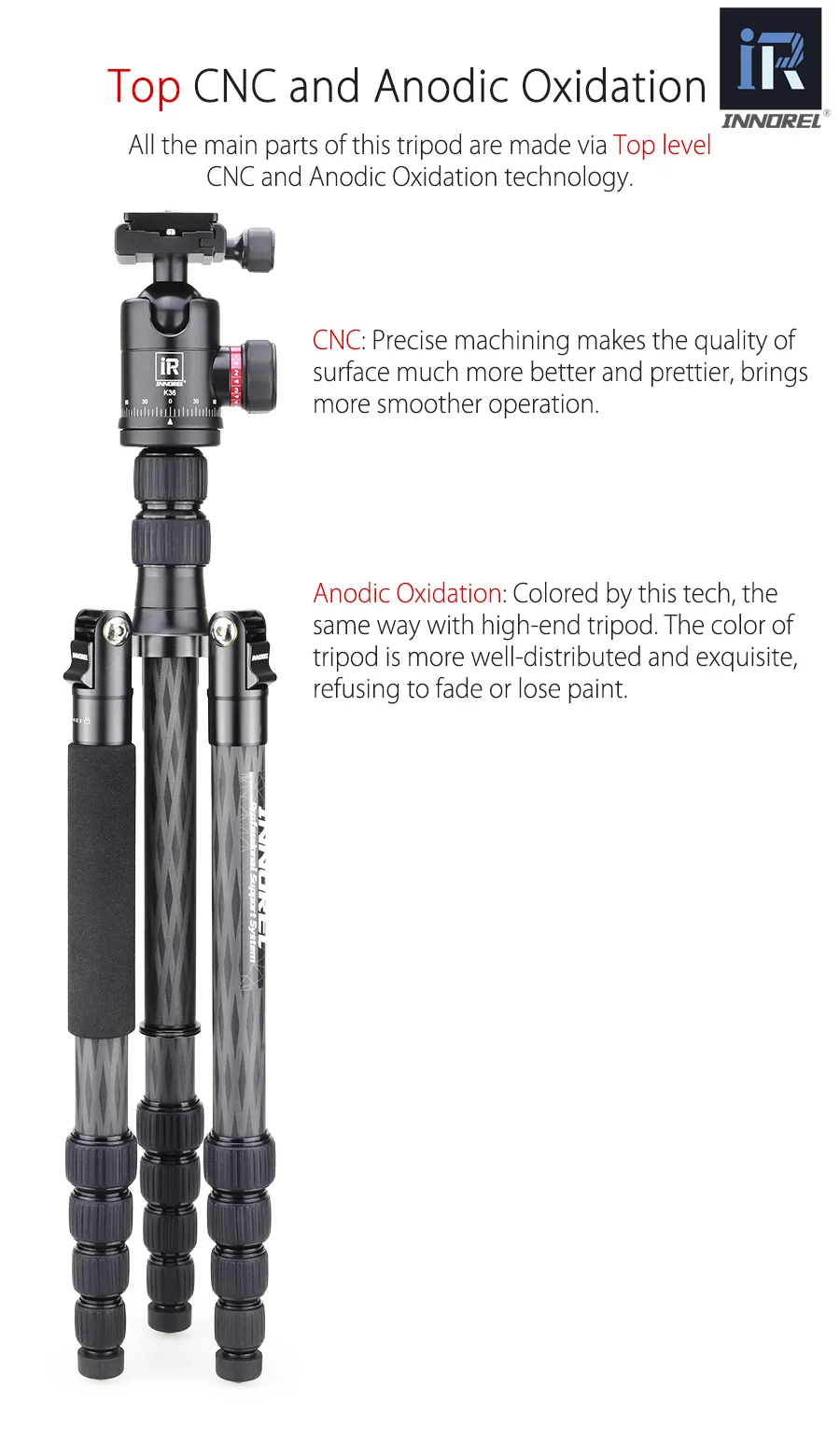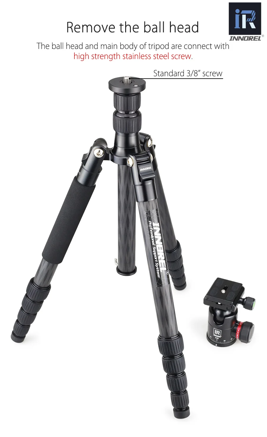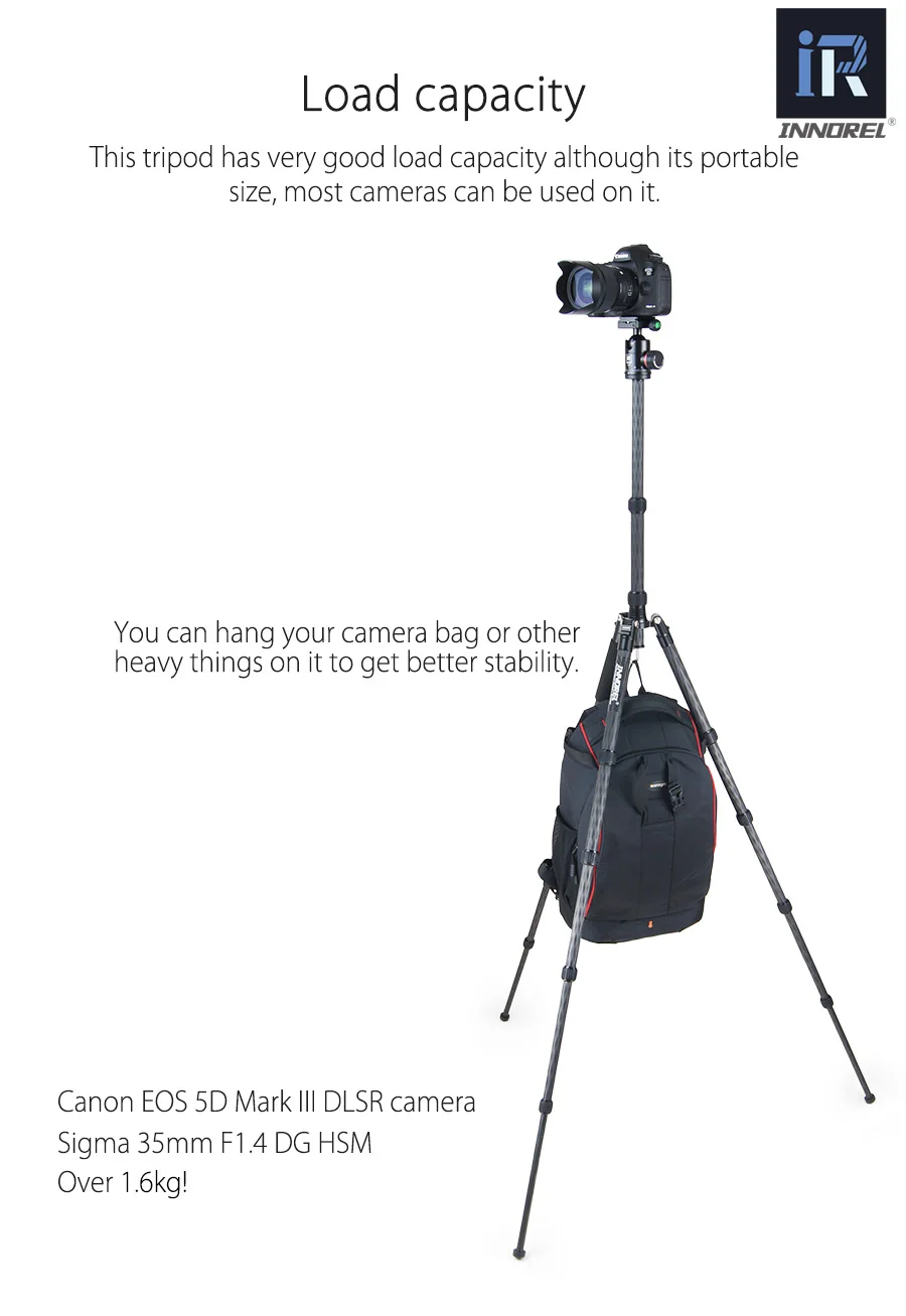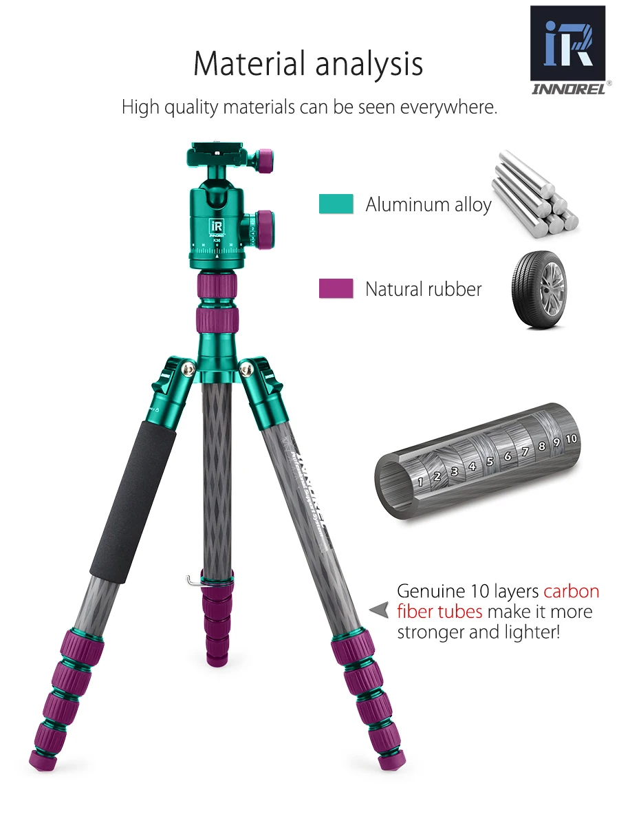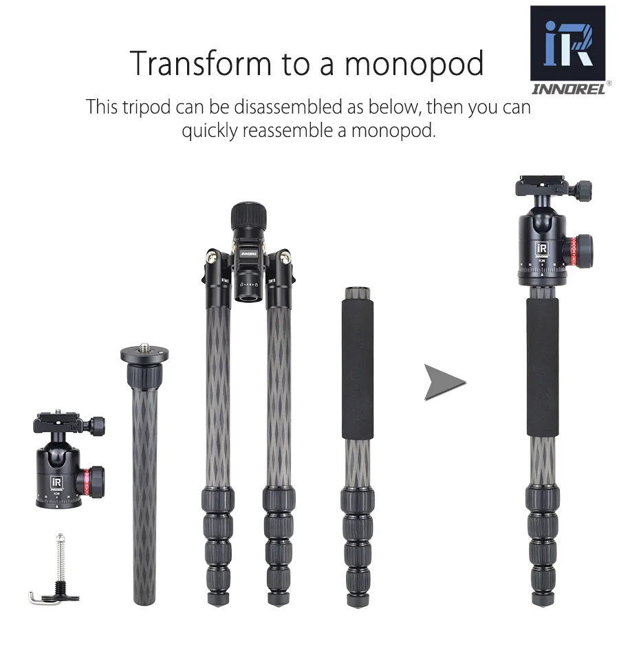 Профессиональный штатив INNOREL RT55C из углеродного волокна, компактный дорожный штатив для камеры, видео монопод с шаровой головкой и быстроразъемной пластиной