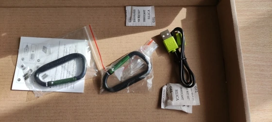 Спасибо за выполненный заказ. Доставка IML курьером до двери. Магазин в России. Батарея в картонной коробке, кроме неё два карабина и шур 50см USB to microUSB. Идут дожди- проверил оба порта от искуственного освещения на зажигание светодиода. Судя по отзывам, люди использовали для зарядки смартфонов и пауэрбанков, но конечно сомневаюсь, что 21Вт- это же 4А при 5В ;-) Рекомендую продвца и магазин для покупок.