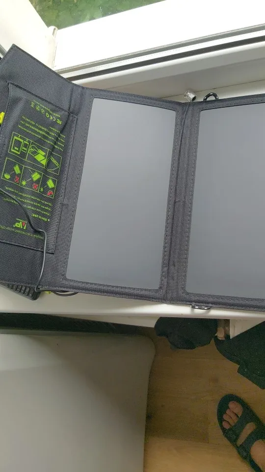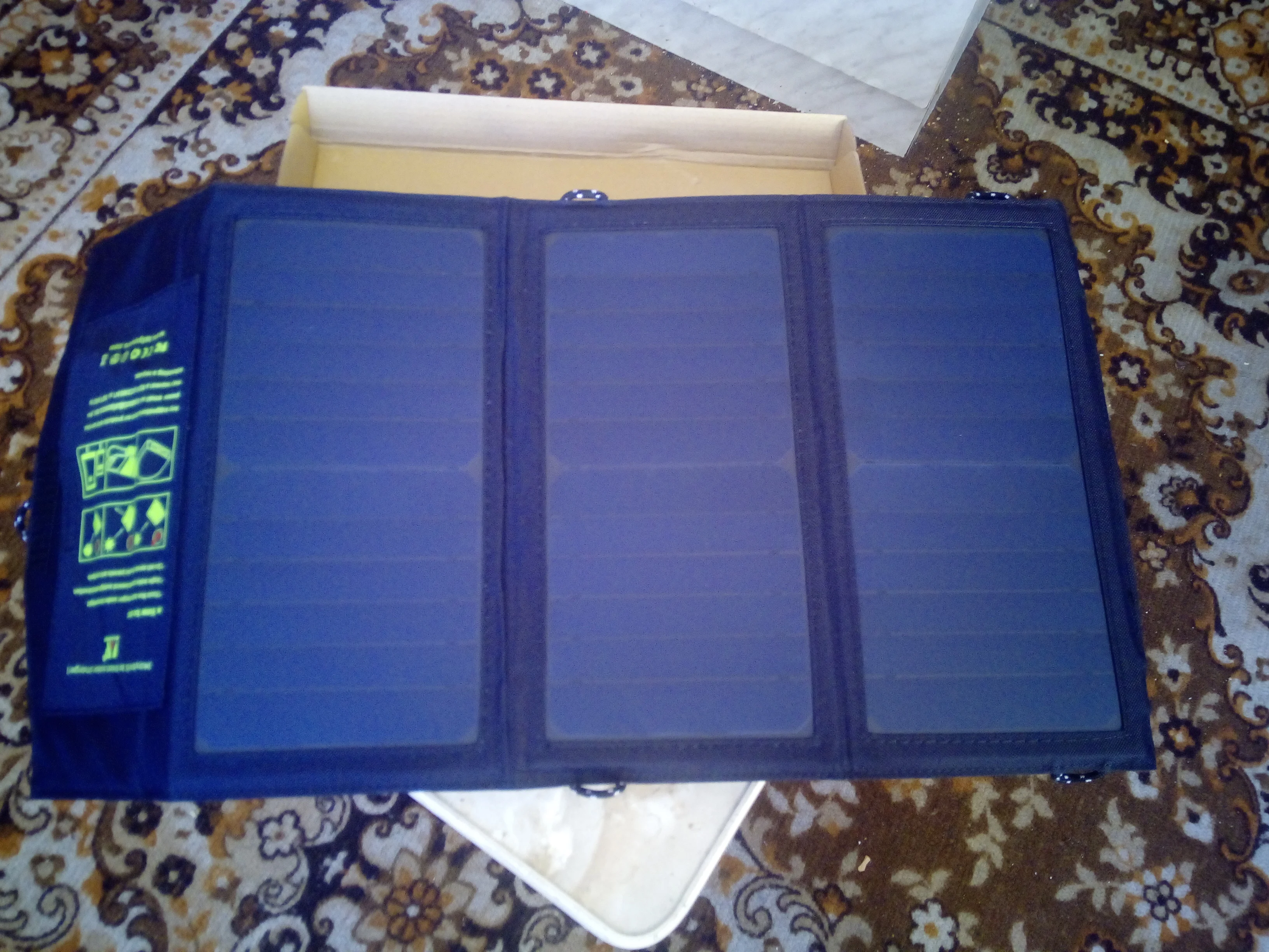 Панель выполнена качественно, складывается в довольно компактные размеры. На слабом солнце выдавала 0.5А, посмотрим когда будет яркое солнце. По обзорам может выдавать до 2.8А
