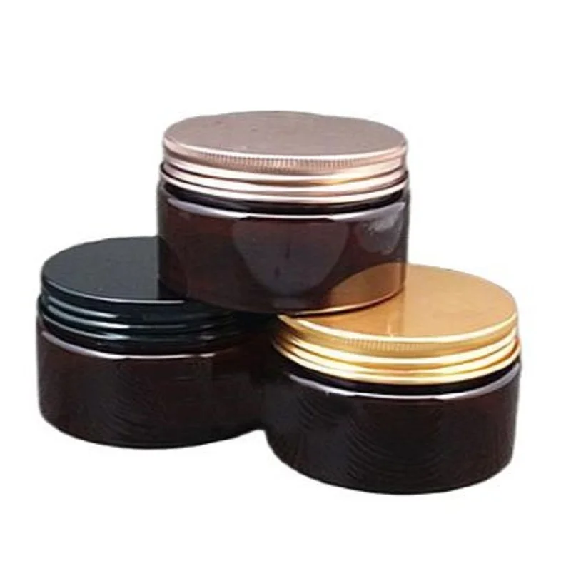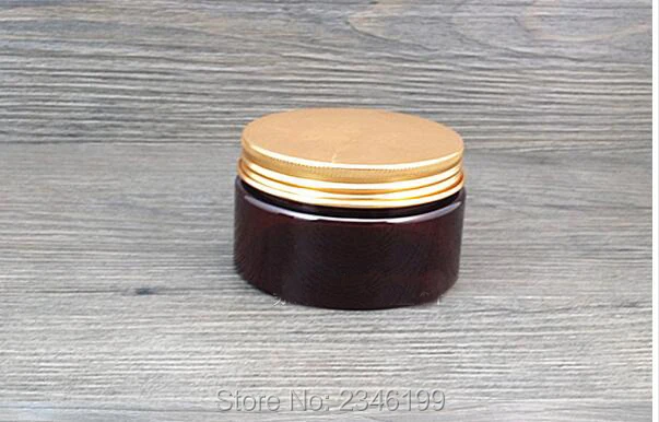 100 г 100 мл пластиковая банка для кремов, темно-коричневая коробка, алюминиевая крышка с гальваническим покрытием, косметический контейнер высокого качества, 30 шт.лот