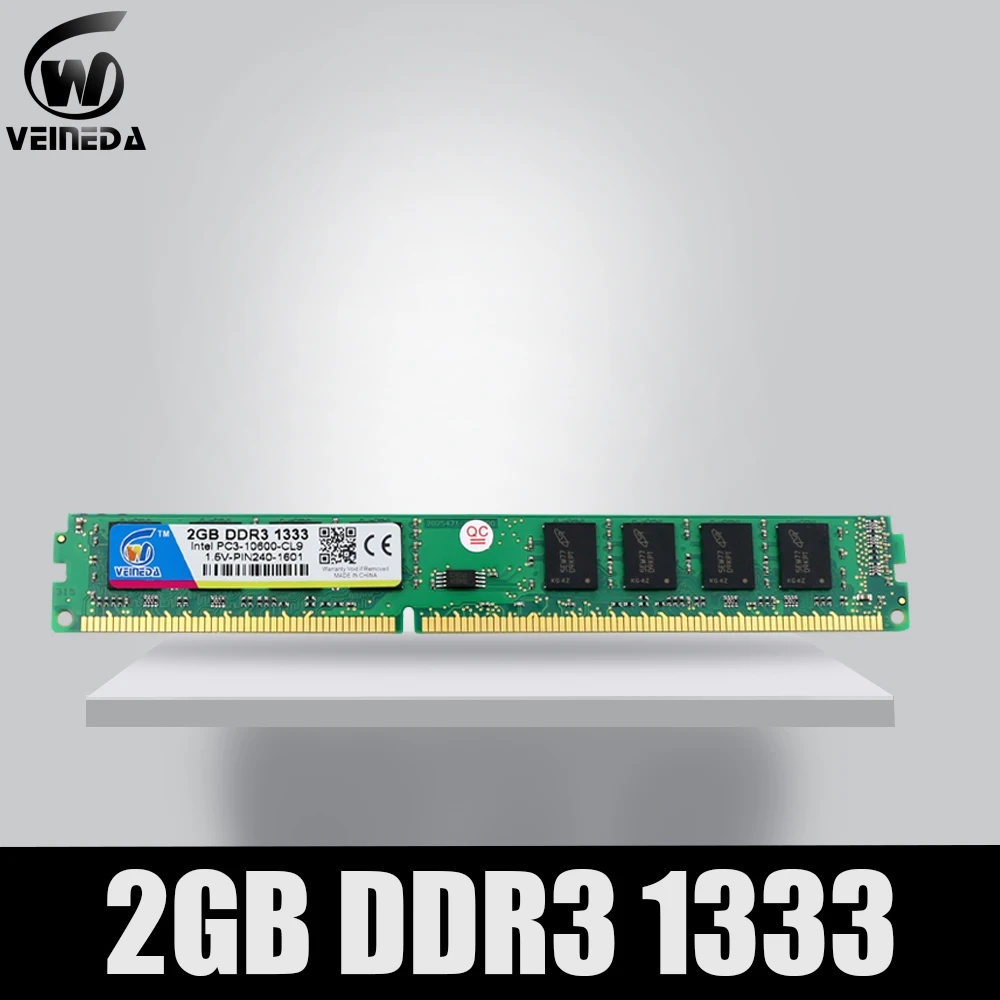 VEINEDA DDR3 2 Гб 1333 МГц Память ram ddr 3 1333 pc3-10600 оперативная Память dimm для AMD и Intel® для настольных ПК совместим 1066 1600 МГц ОЗУ