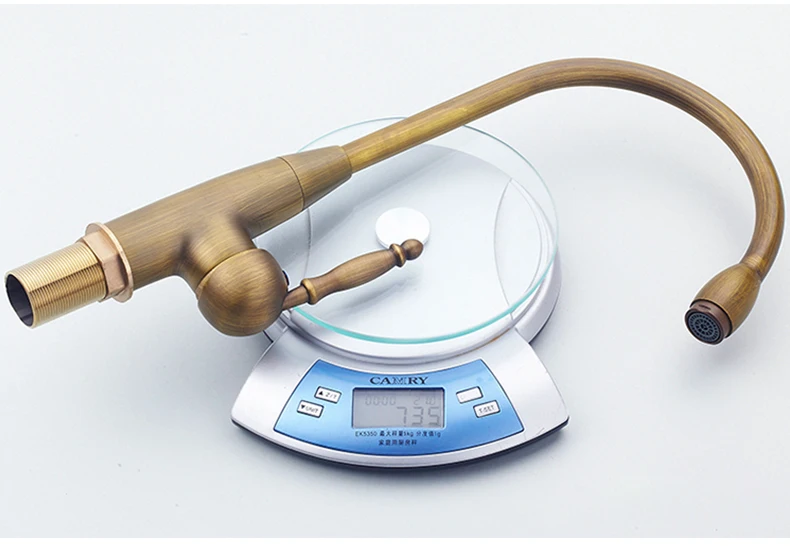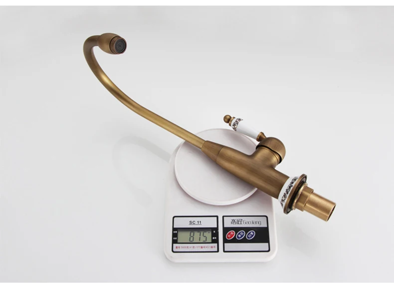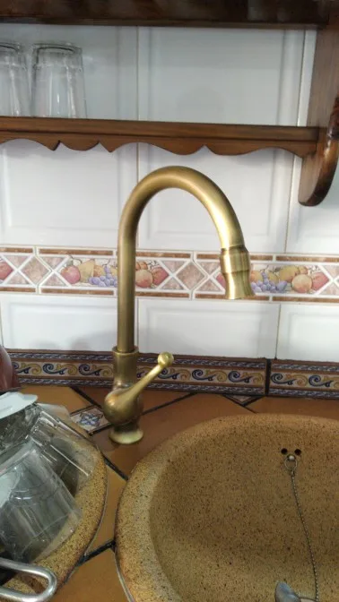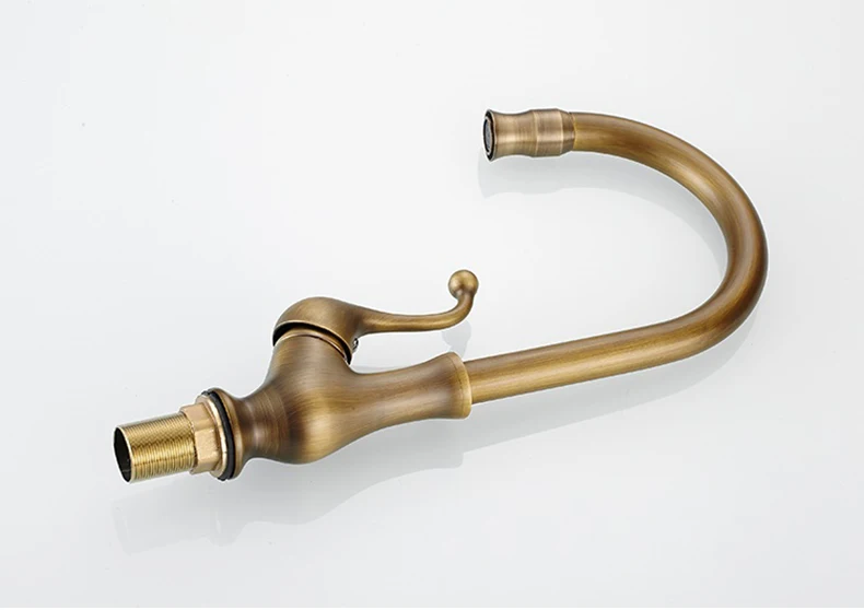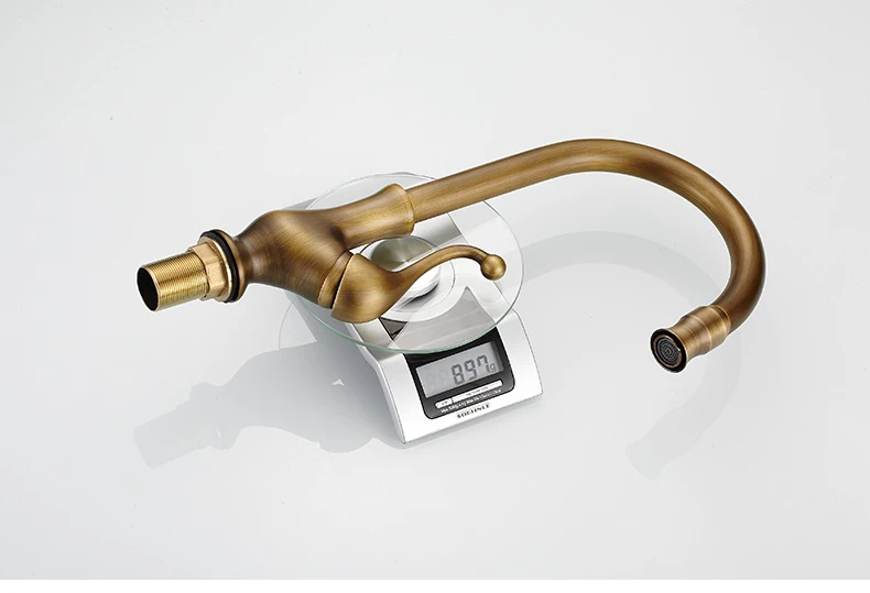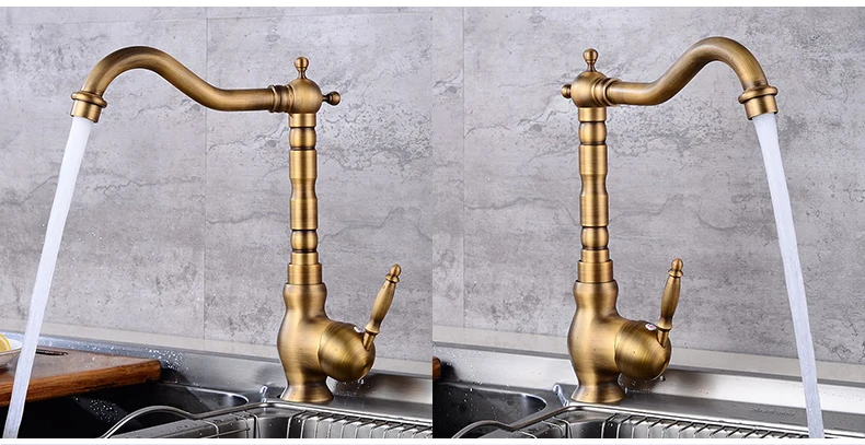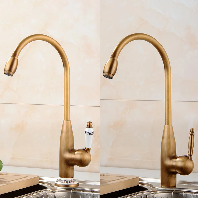 Смеситель для кухни с латунной отделкой под старину, кран для горячей и холодной воды с одной ручкой, поворотный на 360 градусов, смеситель для раковины для ванной EK5013