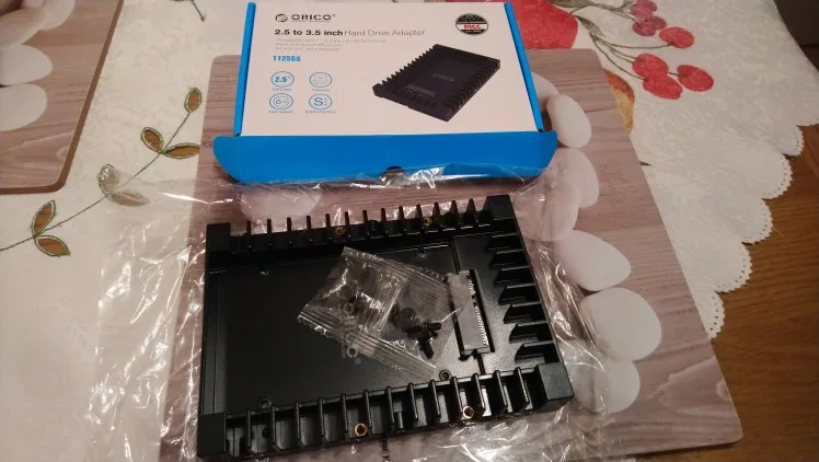 Доставка быстрая курьером в руки. Честно говоря думал штука из металла, а она пластик. В принципе можно было не заморачиваться, положить в отсек, SSD ничего не весит. В корпусе винчестеры развёрнуты, и вентилятор на них дует. Теперь только усложнилось охлаждение SSDешки. В НИКСе у нас такой переходник 1т.р. с лишним стоит. Пусть будет)