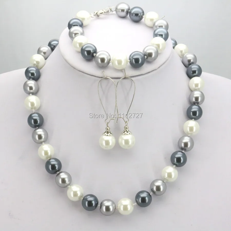 10 мм круглая серебристо-серая длинная жемчужная оболочка ожерелье W...