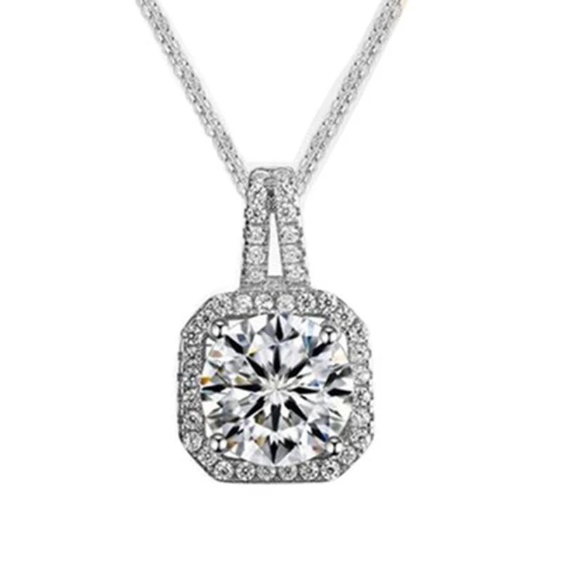 Ожерелье женское из серебра 925 пробы с квадратным кристаллом