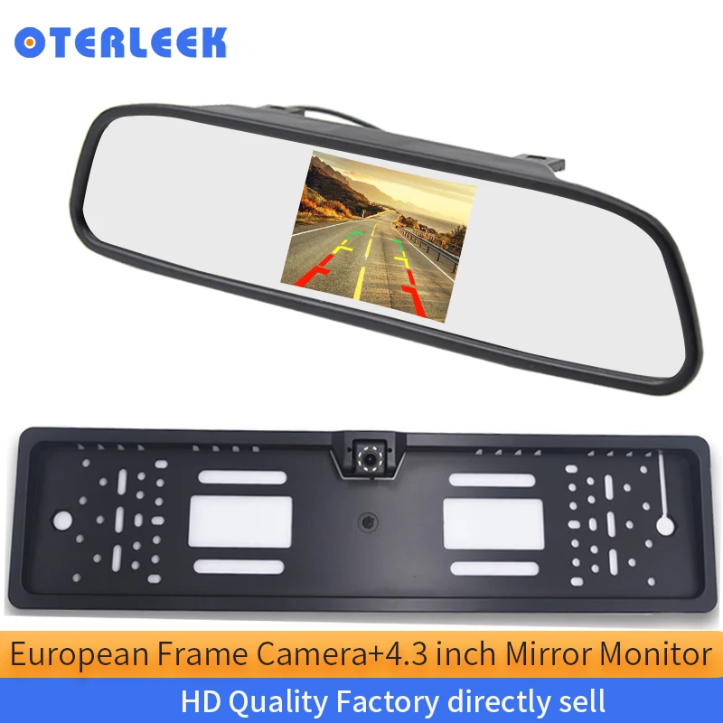 4,3 "TFT LCD 2 видео вход автомобиля зеркало заднего вида Мониторы с 8 светодиодный ЕС номерной знак рамка заднего вида резервная камера заднего вида
