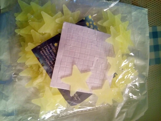 классные звездочки, заряжаются от света и светятся в темноте. в упаковке было 101 штука. ребёнок доволен