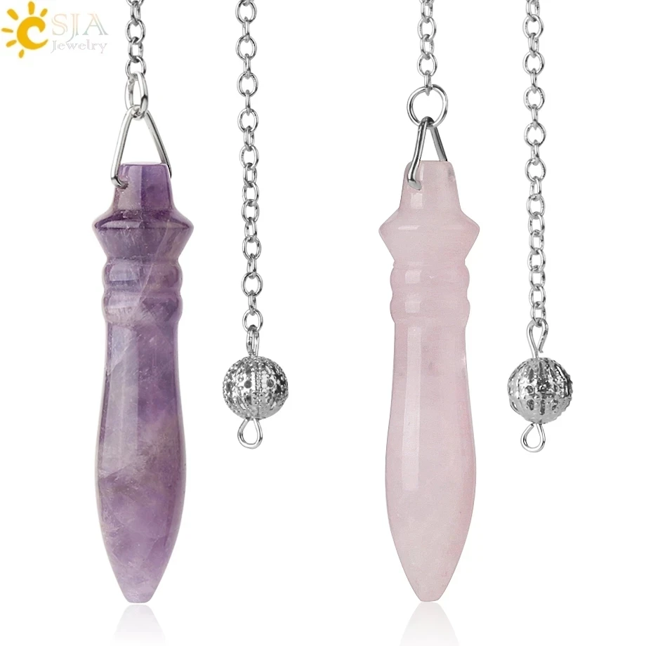 CSJA лечебный Маятник для Divination Розовый Кварц Маятники биолокационный натуральный камень драгоценный камень, реики кристаллы кулон E112