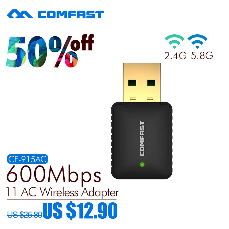 Comfast 2,4G + 5,8G usb WI FI адаптер 802.11AC двухдиапазонный USB беспроводной адаптер 600 Мбитс ac WiFi роутер встроенный 2dBi wifi антенна