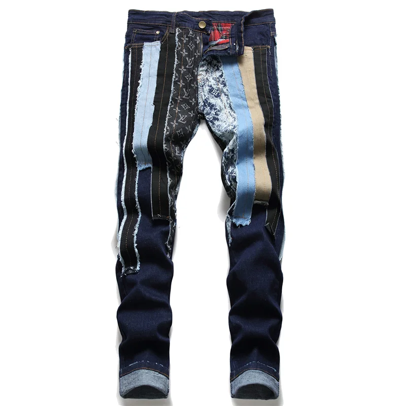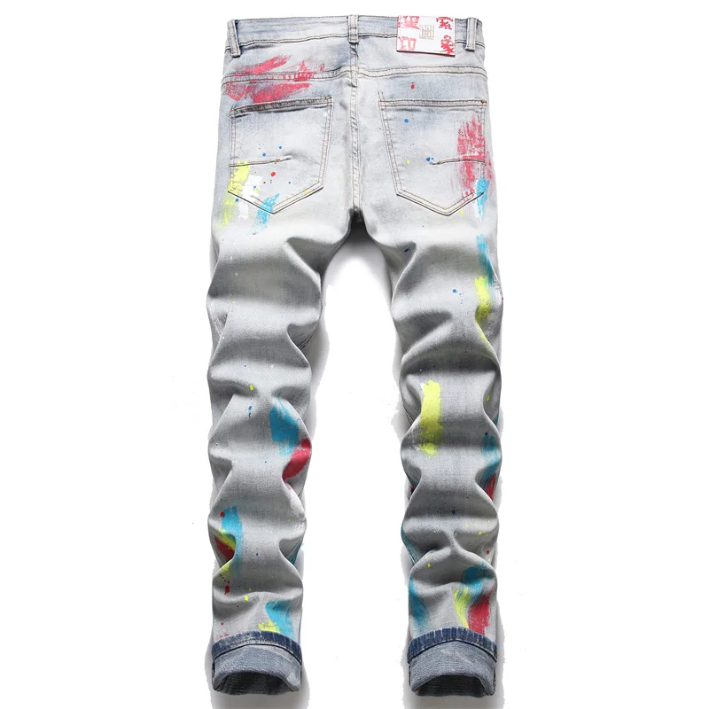 Джинсы мужские зауженные, цветные брюки из денима, модные дизайнерские штаны, шоу, Прямая поставка
