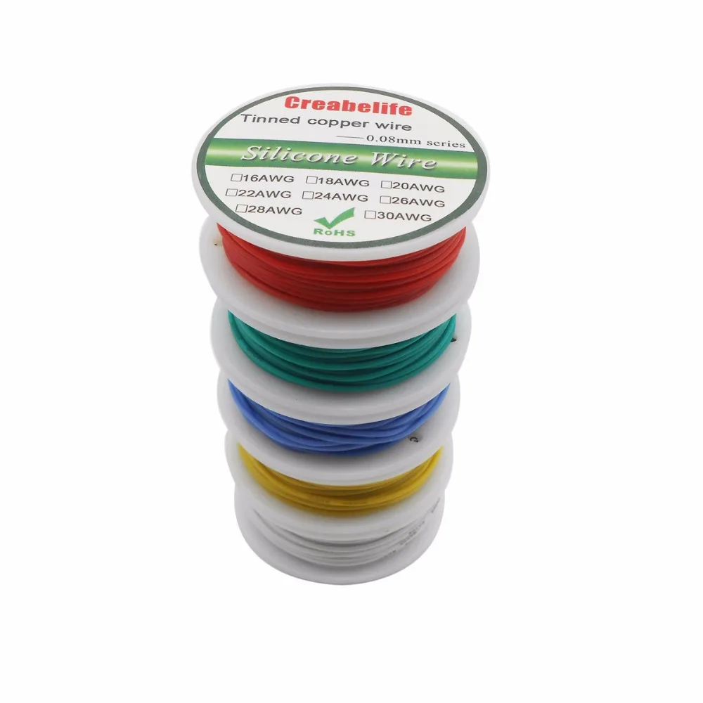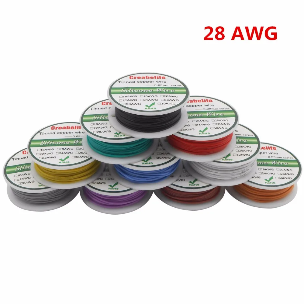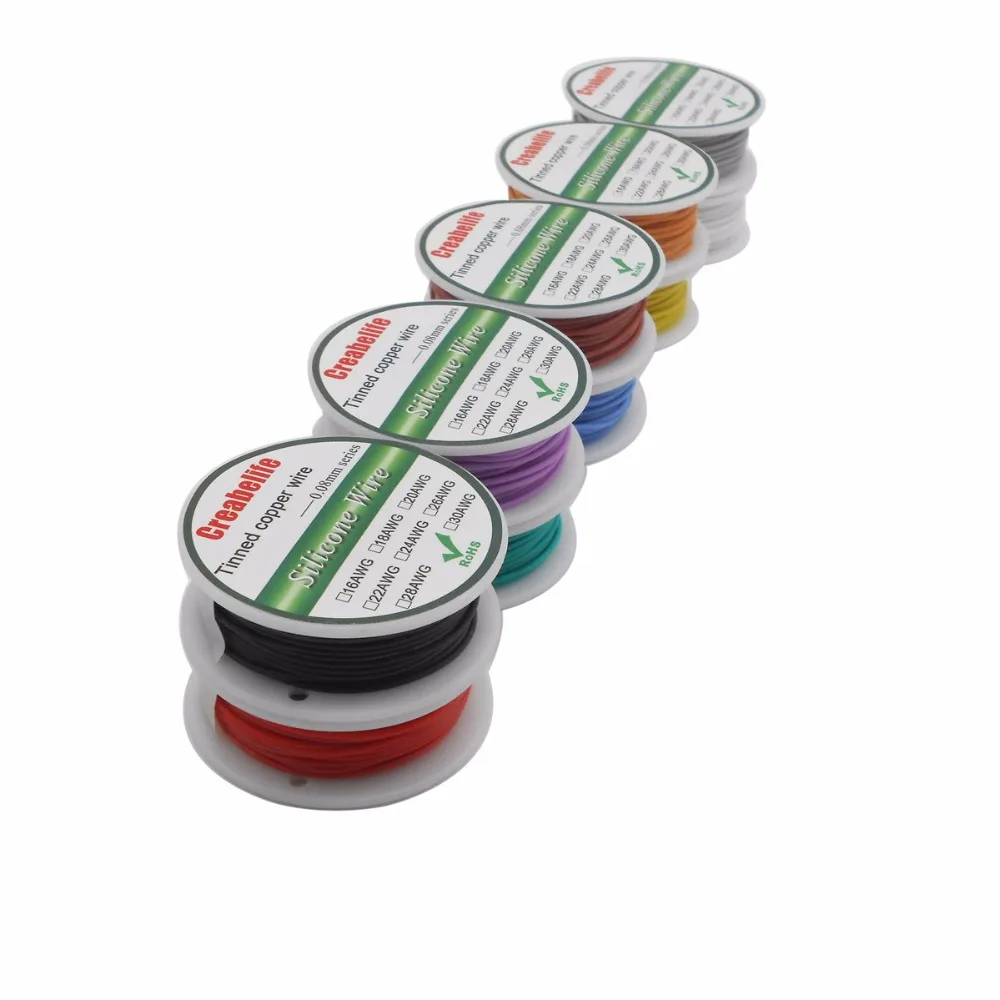 10 м 28 AWG гибкий силиконовый провод RC линейный кабель OD 1,2 мм линия 10 цветов катушка Луженый провод из чистой меди электрический провод