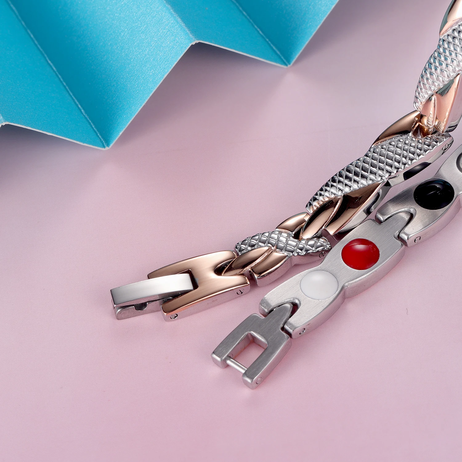 Rainso нержавеющая сталь Магнитная браслеты исцеление био браслеты с подвесками для женщин розовое золото полированная OSB-692SRGFIR