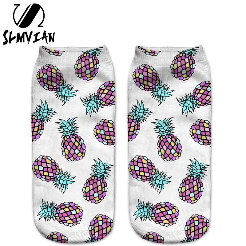 Носки женские SLMVIAN, цветные, с 3D-принтом ананаса, в стиле Харадзюку, низкие, трикотажные носки по щиколотку