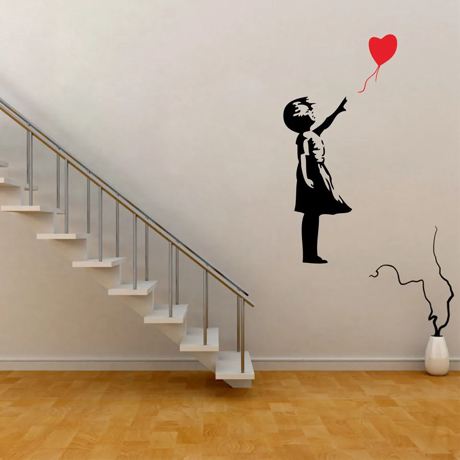 Наклейки на стену Banksy, Виниловая наклейка с изображением девушки воздушного шара, бесплатная доставка