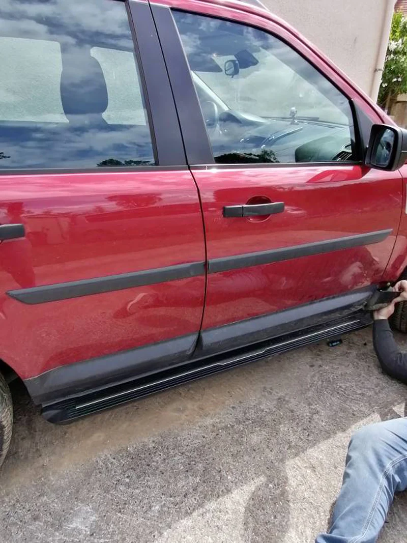 Найдите оригинальные отверстия шасси --- Установите кронштейн ---- затем закрепите боковой шаг. Очень просто.