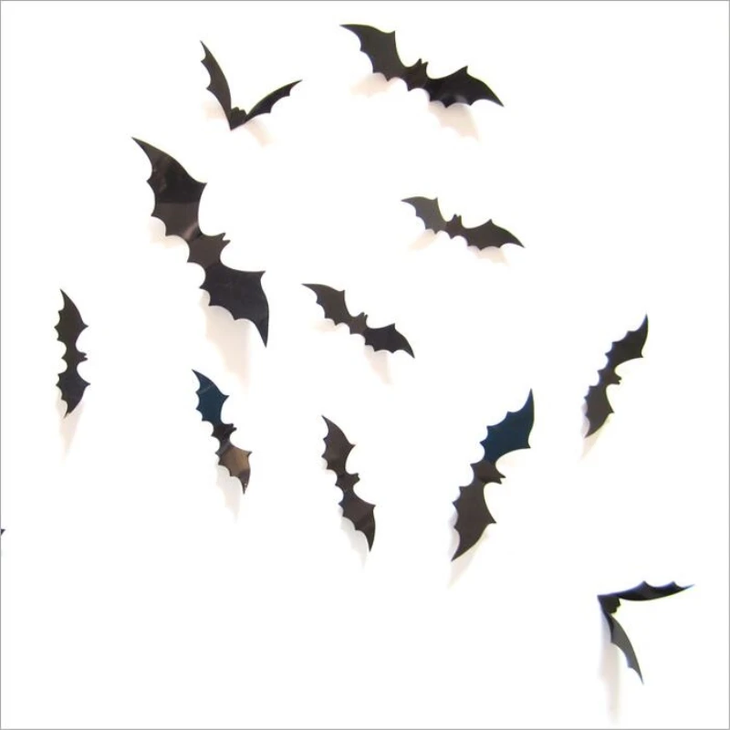 12 шт.лот маскарадный вечерние украшения 3D креативный принт чёрной летучей мыши настенные наклейки из ПВХ для хэллоуина украшения настенные Стикеры для домашнего декора