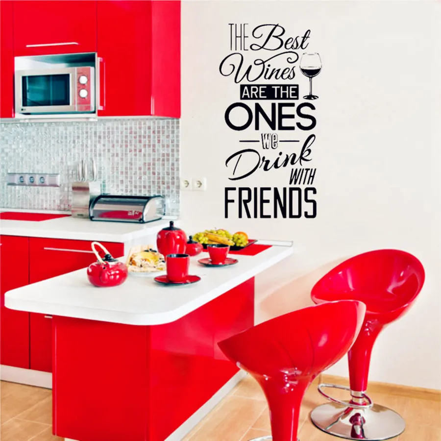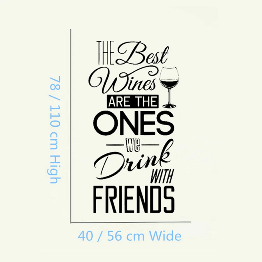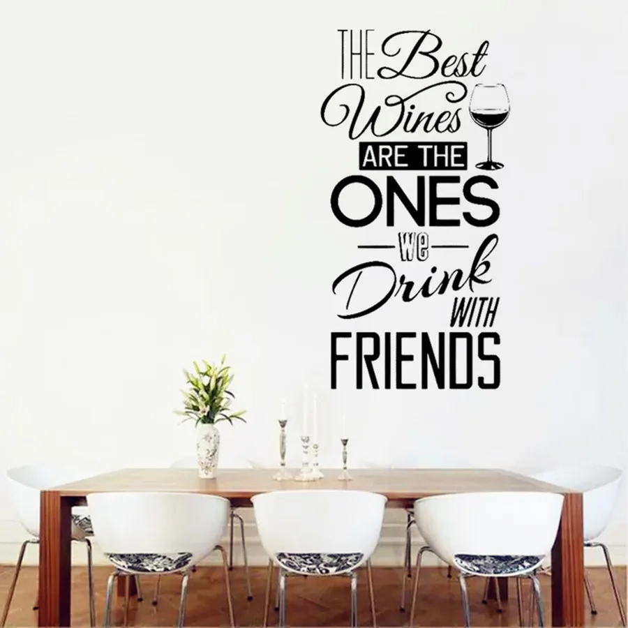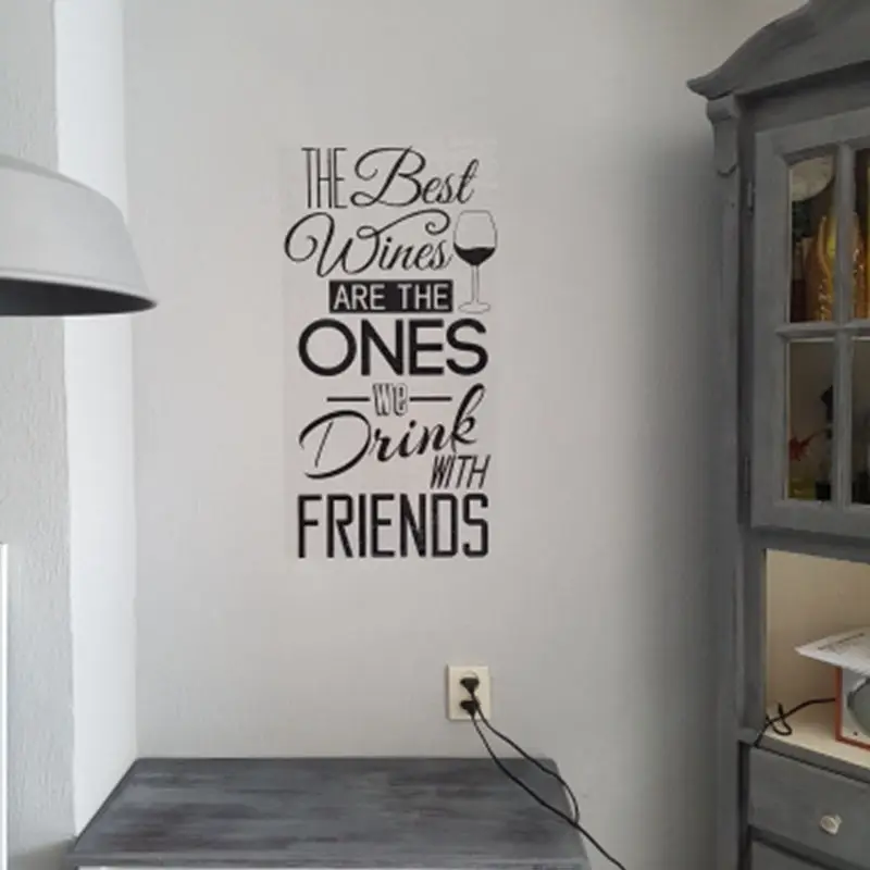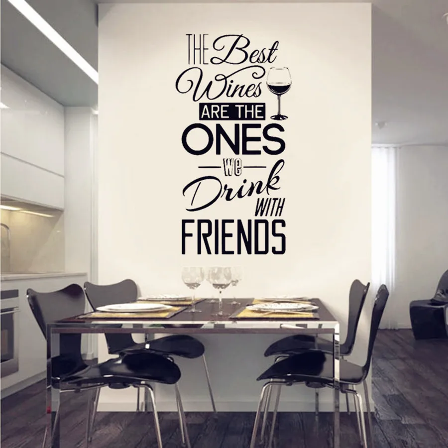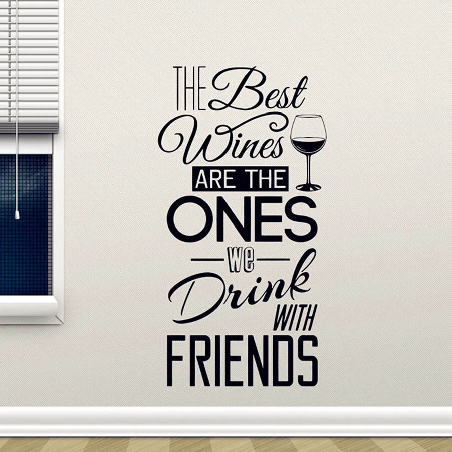 Кухня наклейка-цитата на стену "лучшие вина... с друзьями" виниловая наклейка на стену для столовой, кухни настенная роспись домашний декор