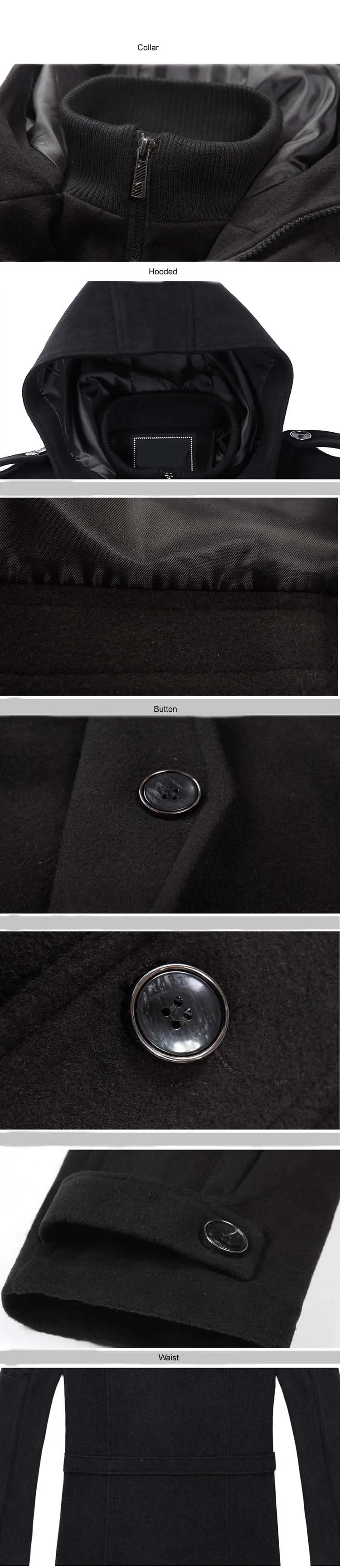 Тренчкот мужской утепленный шерстяной, модное длинное пальто, теплая ветровка, черная серая m-3xl куртка, Осень-зима
