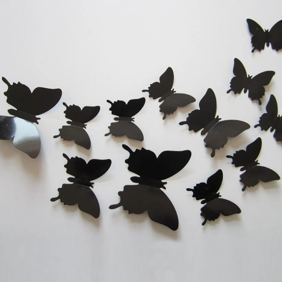 Двухслойные 3D наклейки на стену, 12 шт., бабочки, украшение для дома, магнит на холодильник, декоративный магнит