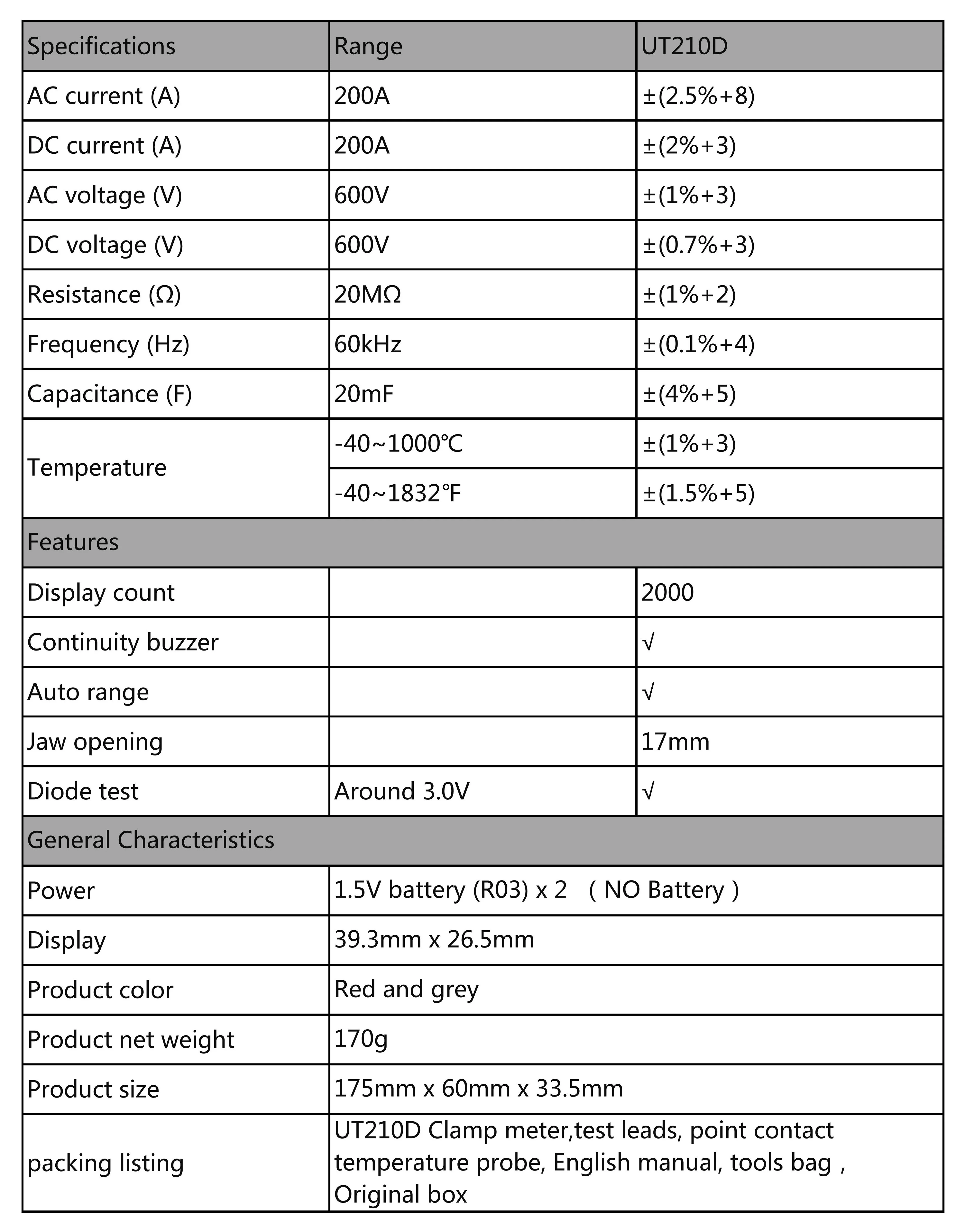 Токоизмерительные клещи UNI T UT210D, мультиметр переменногопостоянного тока, истинное среднеквадратичное значение, автоматические клещи, вольтметр, проверка температурной емкости NCV