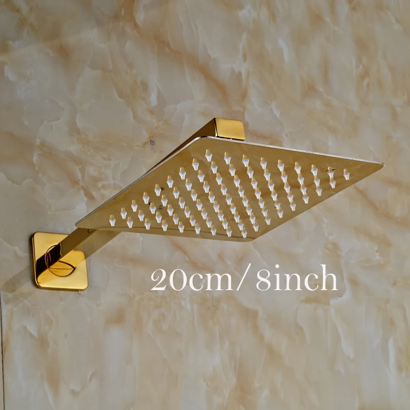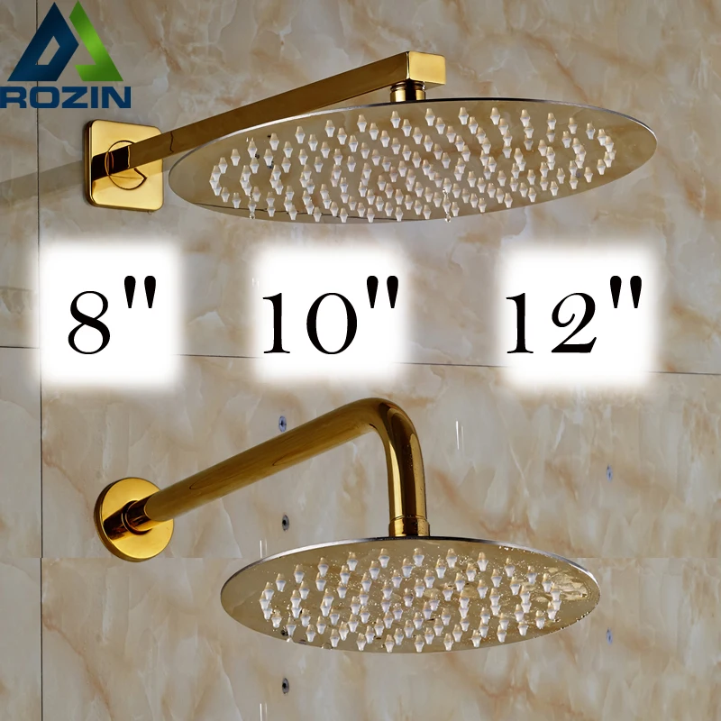 Бесплатная доставка Золотая 8/10/12 дюйма ультратонкая дождевая душевая лейка с настенным креплением латунный душевой рычаг