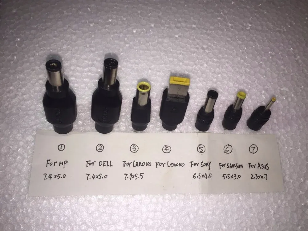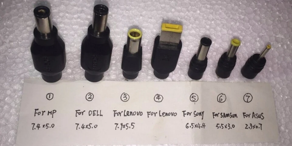 Характеристики разъема 2nd 7: для hp 7,4*5,0/2: Для dell 7,4*5,0/3: Для lenovo 7,9*5,5/4: Для lenovo usb порт/5: Для sony 5:6. 5*4,4/6: для samsun 5,5*3,0/7: для asus 2,3*0,7