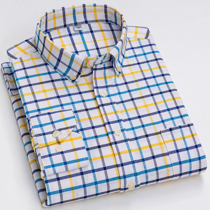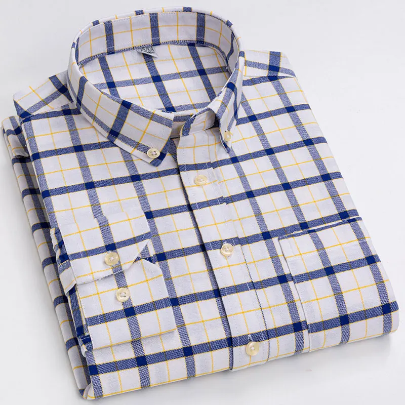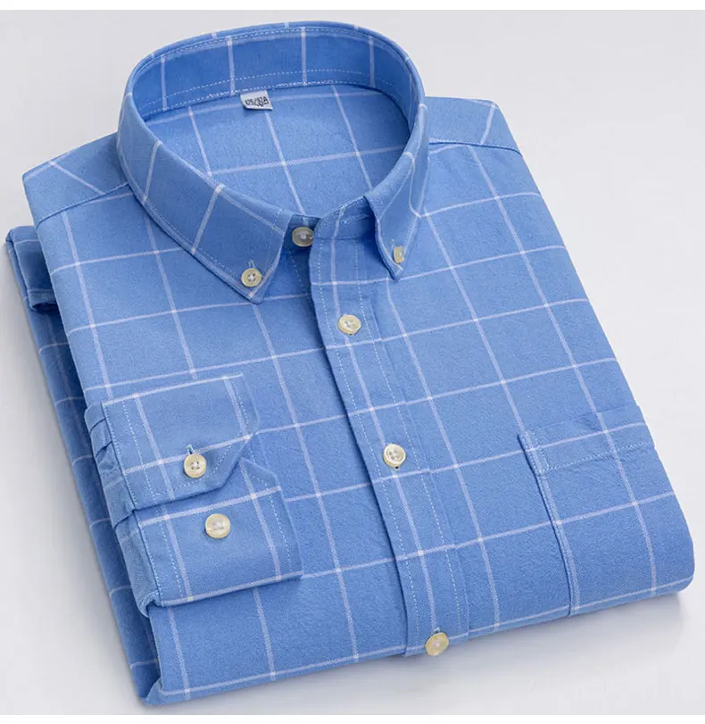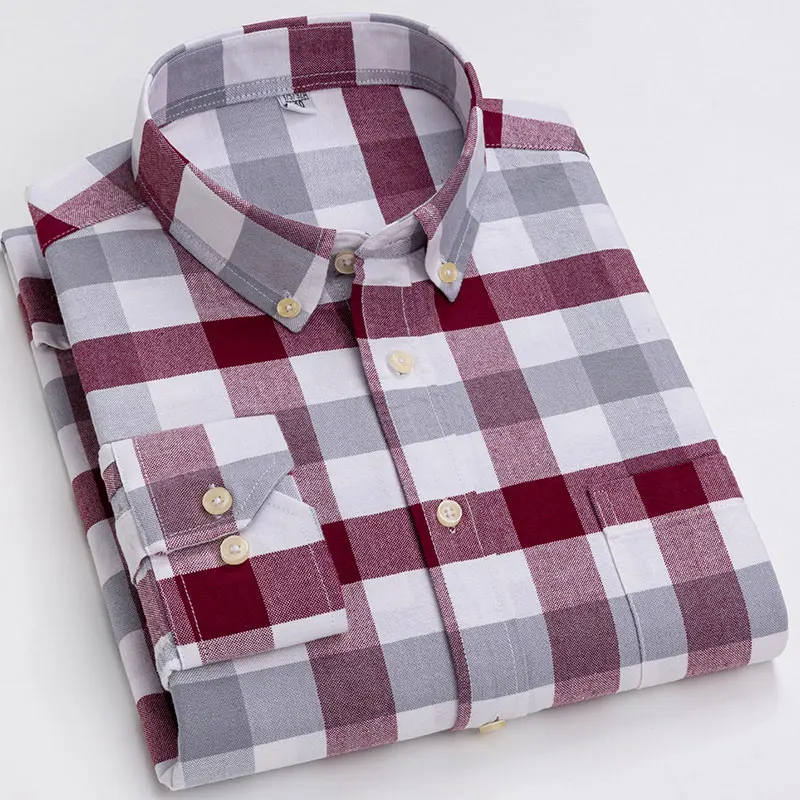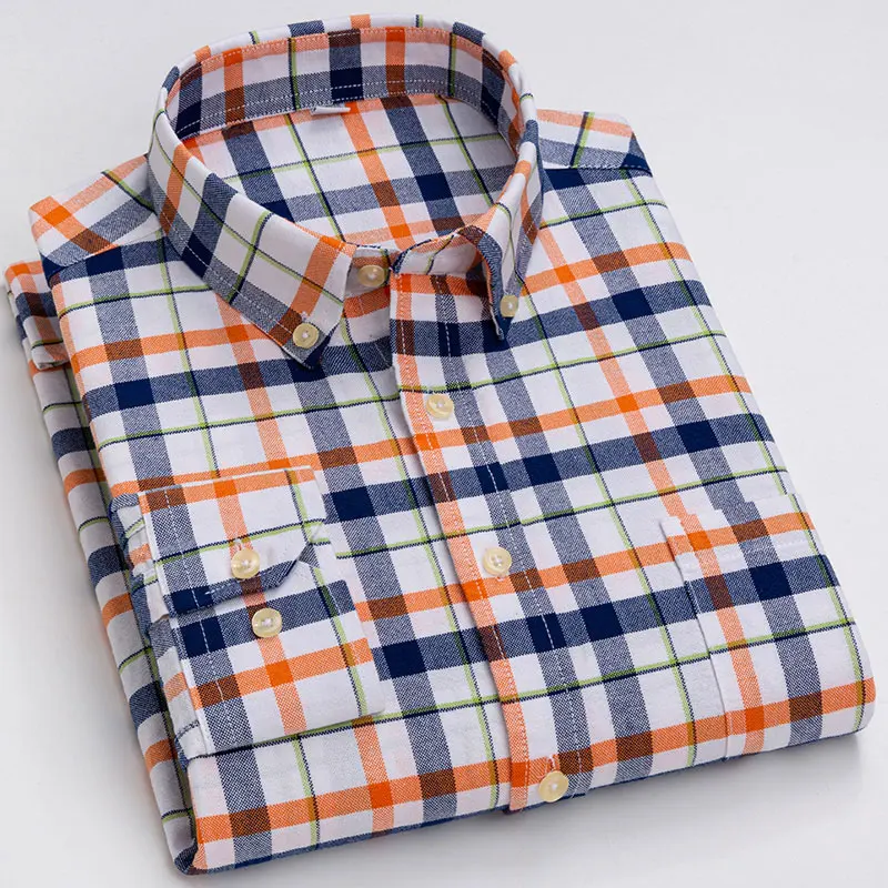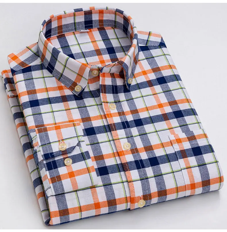 Рубашка мужская повседневная из ткани Оксфорд, в клетку, 100% хлопок, в полоску
