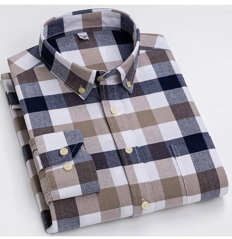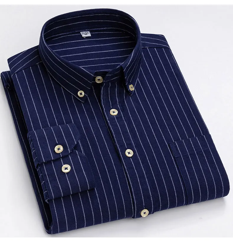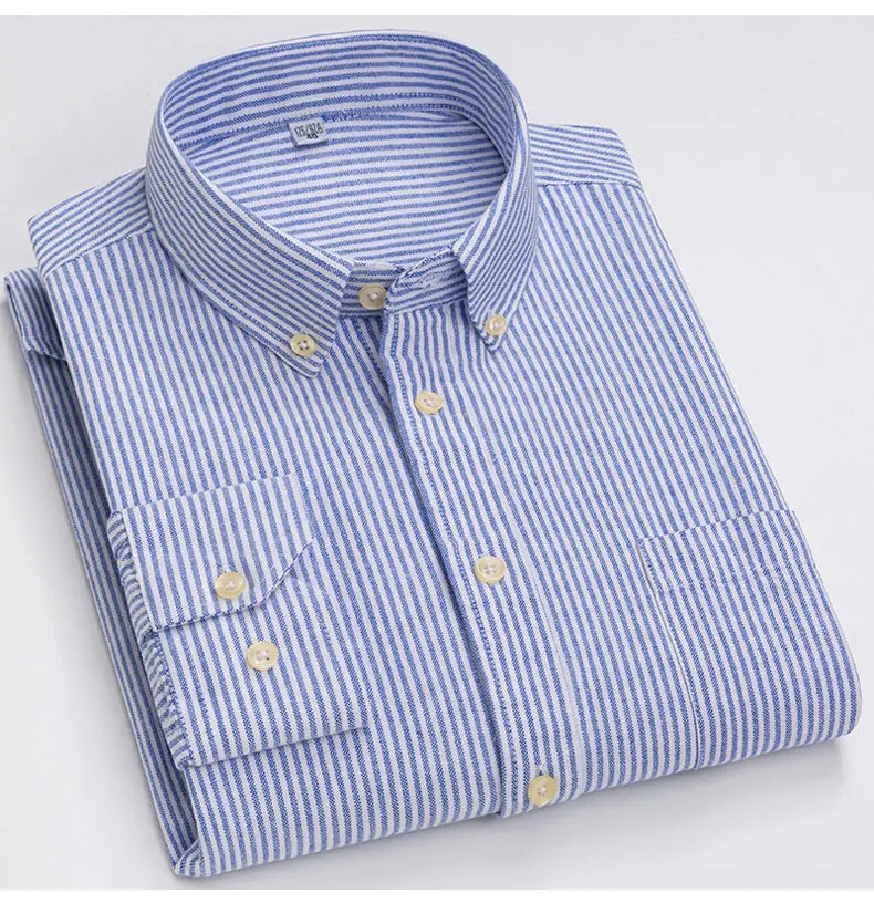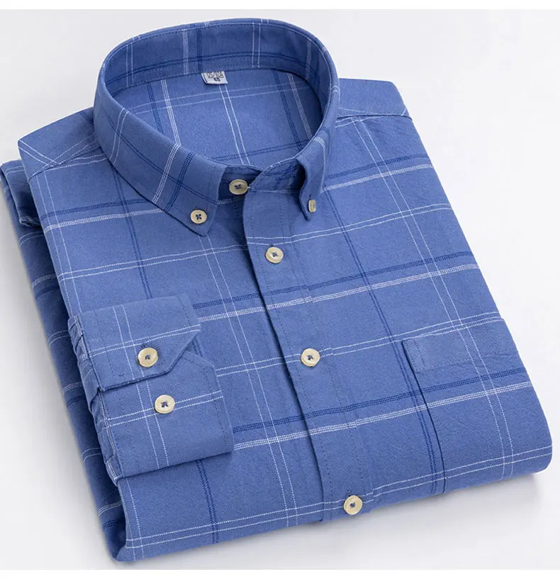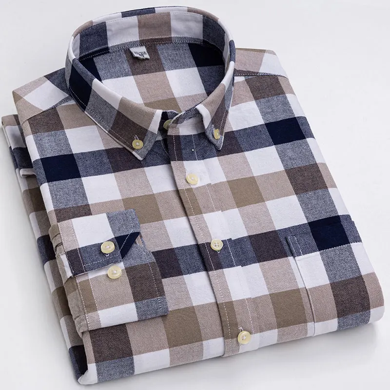 Рубашка мужская повседневная из ткани Оксфорд, в клетку, 100% хлопок, в полоску