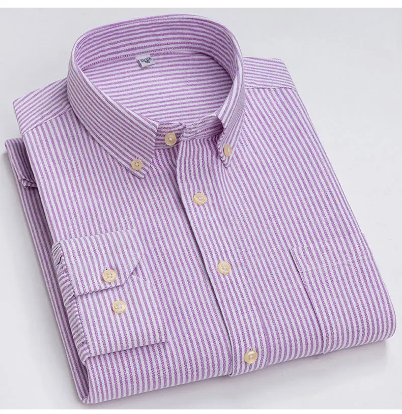 Полосатая оксфордская ткань, деловые мужские повседневные рубашки, ...