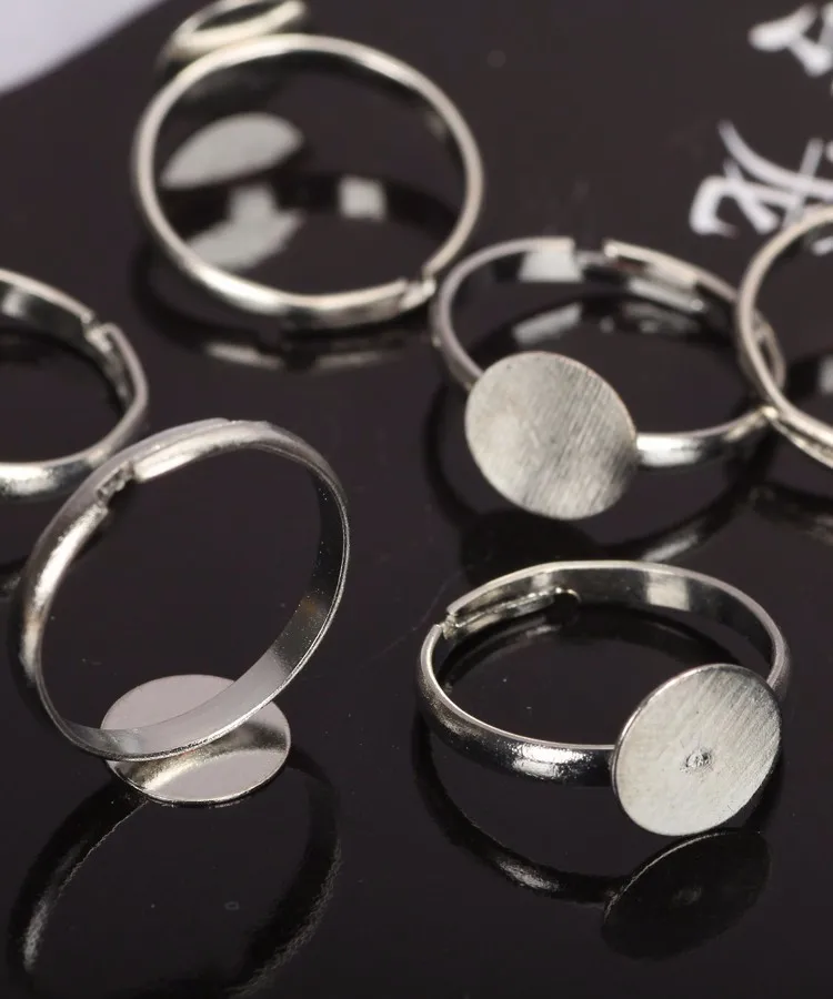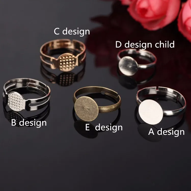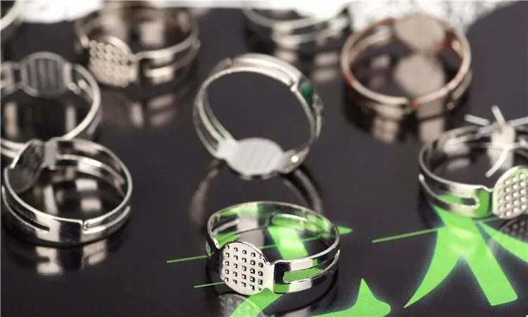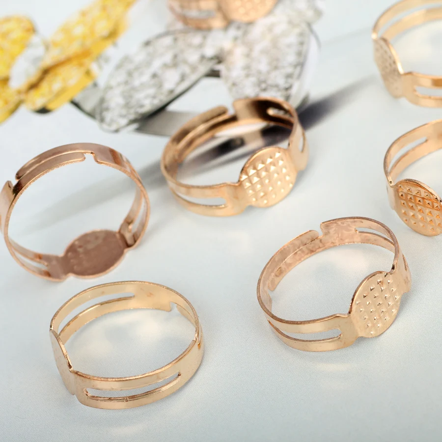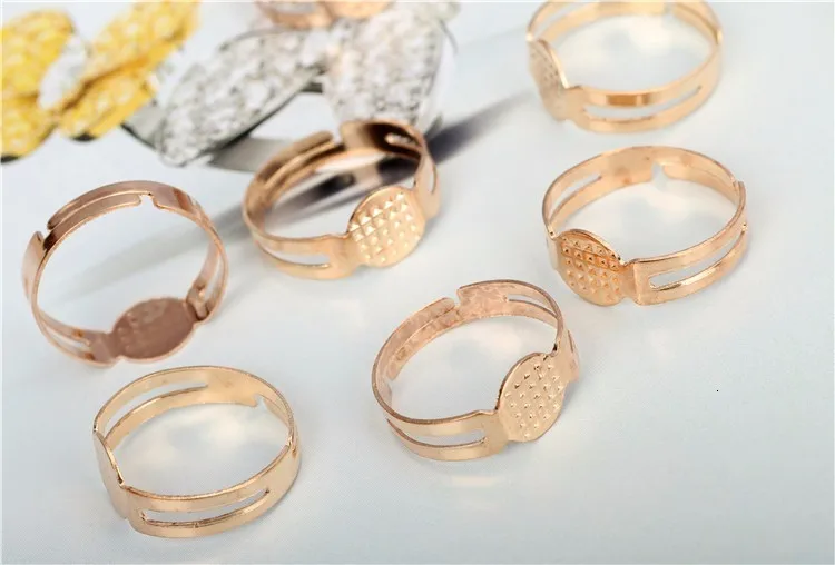 50 шт.лот, металлические регулируемые Плоские Кольца, базовые заготовки, фурнитура, золотой клей, античная бронза, Diy Кольца для детей, сделать компоненты