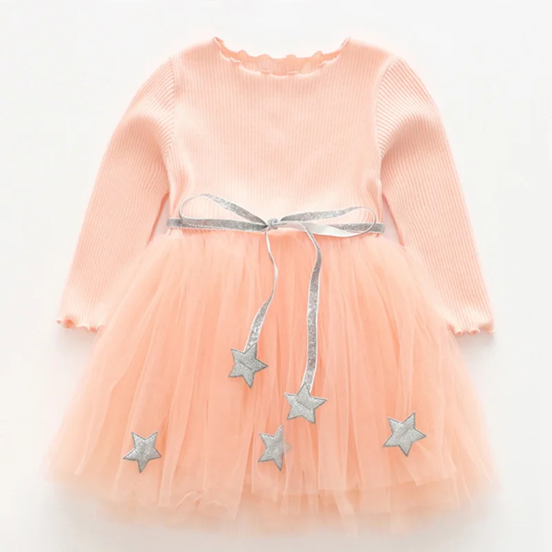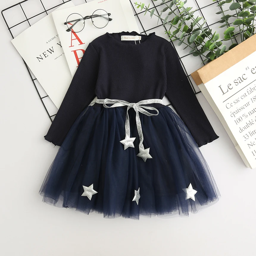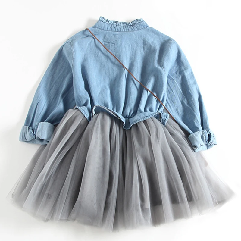 Кружевное платье для девочек, новое осеннее детское платье, повседневное Сетчатое платье принцессы с длинным рукавом и аппликацией из мультфильма, детская одежда