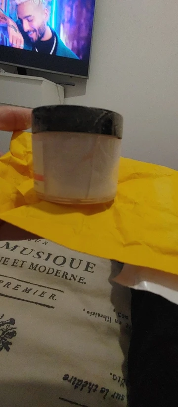 Хорошо. Крышка банки треснулась во время доставки, но я сумел вылить ее обратно в баночку для хорошего использования из сумки для доставки. Хорошо. Продавец.
