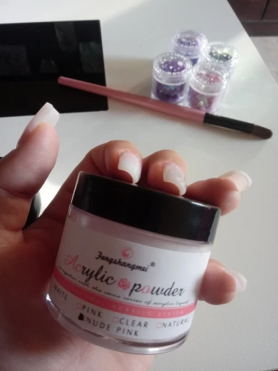 хороший акрил, отлично работает, очень мелкий..цвет нюд пинк разбавляю прозрачным розовым и получается идеальное закрытие для френча..с мономером cnd застывает медленно, как с другими мономерами работает не знаю..у меня лично, отслоек нет вообще..рекомендую..заказываю 3й раз..банка полная и маленький объем и большой..цвет на фото сложно передать, но он реально максимум приближен к натуральному цвету ногтевой, разбавляю, только потому что очень плотный..