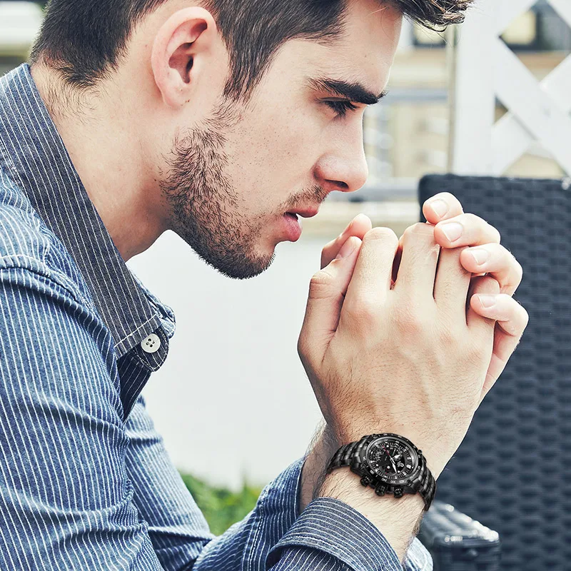 CAINO новые модные спортивные часы Для мужчин Нержавеющаясталь Бизнес Повседневное 100 м Водонепроницаемый Кварцевые наручные часы Relogio Masculino