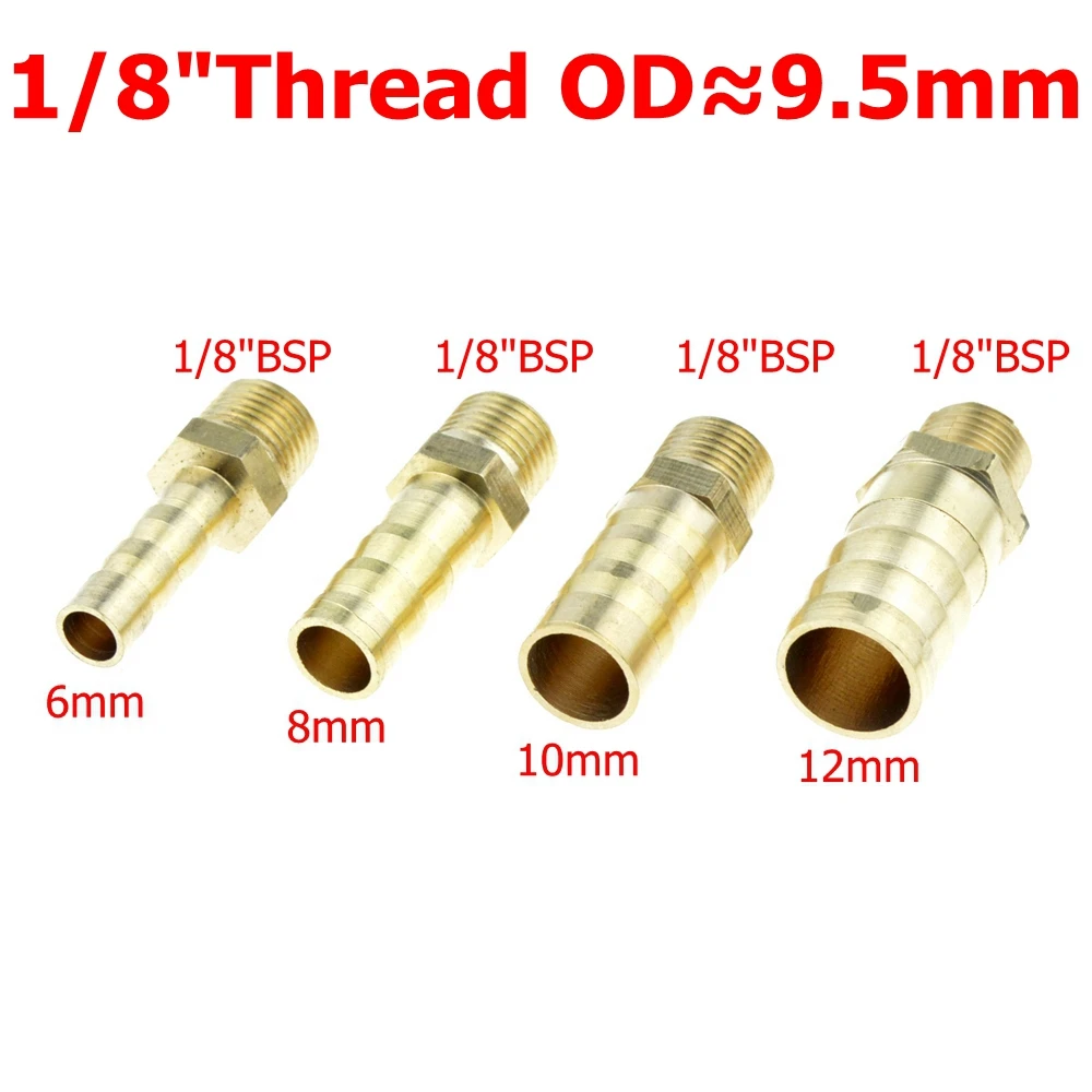 Латунный фитинг для труб 4 мм, 6 мм, 8 мм, 10 мм, 12 мм, 19 мм, Хвостовик с зазубринами для шланга 18 дюйма, 14 дюйма, 12 дюйма, 38 дюйма, дюйма, Штекерный соединитель BSP, медный переходник