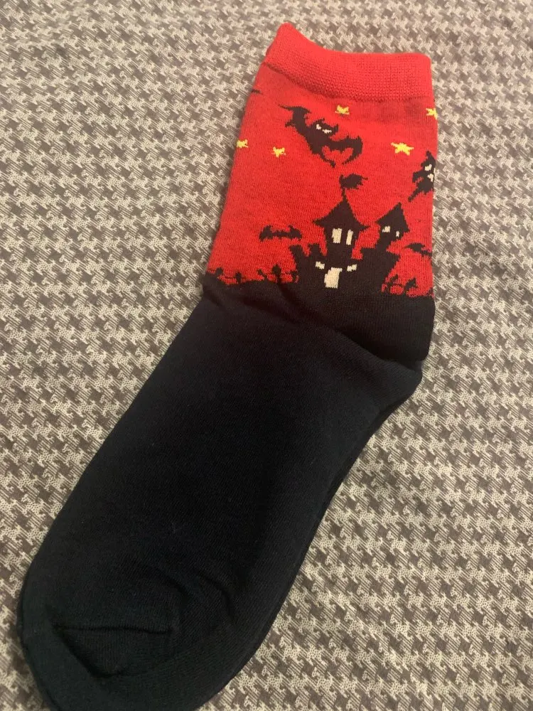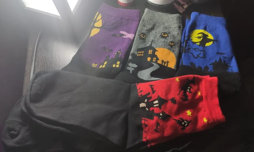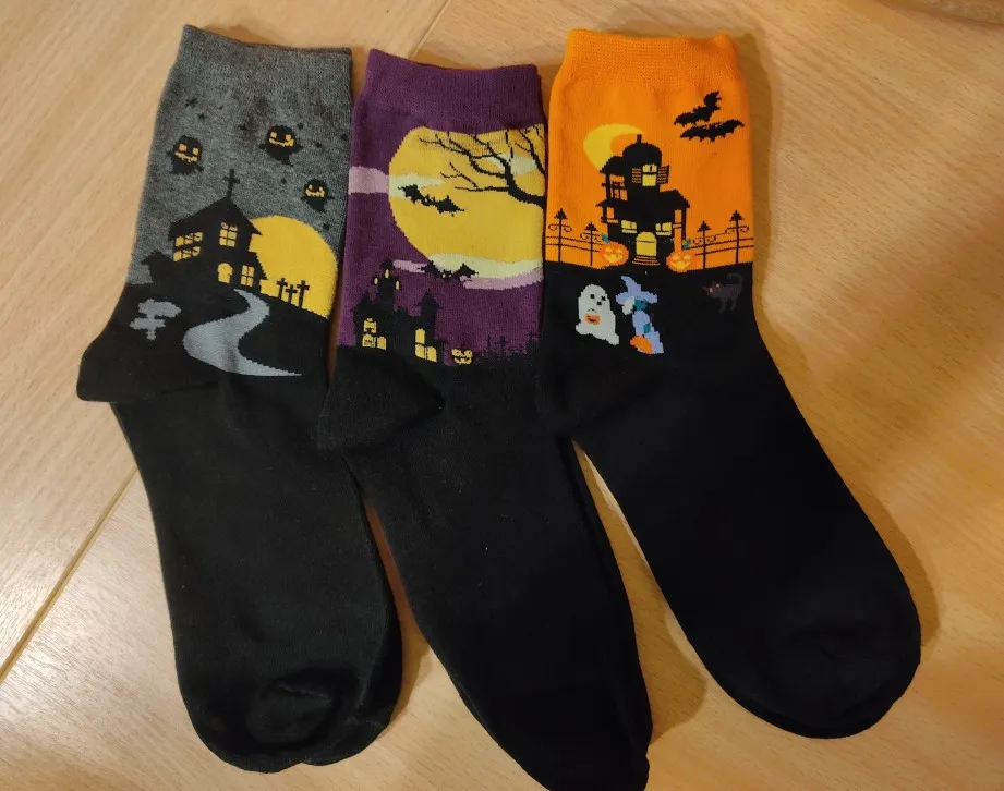 Офигенные носки! Очень качественные и красивые! И пришли как раз к Хеллоуину)