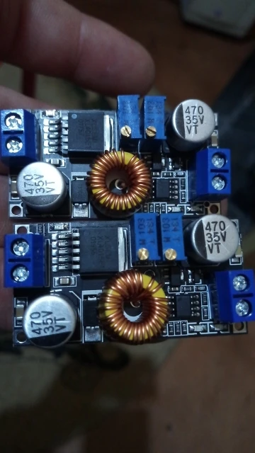 Рабочий, сначала не понял, почему не убавляет напряжение, потом понял, что резисторы длинноходые, долго крутил пока не убавилось. При нагрузке 3А напруга падает. Дроссель греется. Светодиоды ближе к выходу кажет что питание есть, ближе к дросселю что есть нагрузка. Одиночный верхний-что сработало ограничение тока.