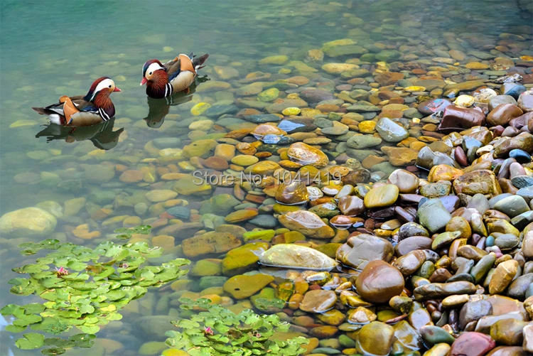 Настенная бумага в китайском стиле, водонепроницаемый самоклеящийся материал для ванной комнаты, из ПВХ, с изображением китайской утки-мандарина в бассейне