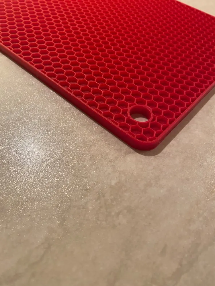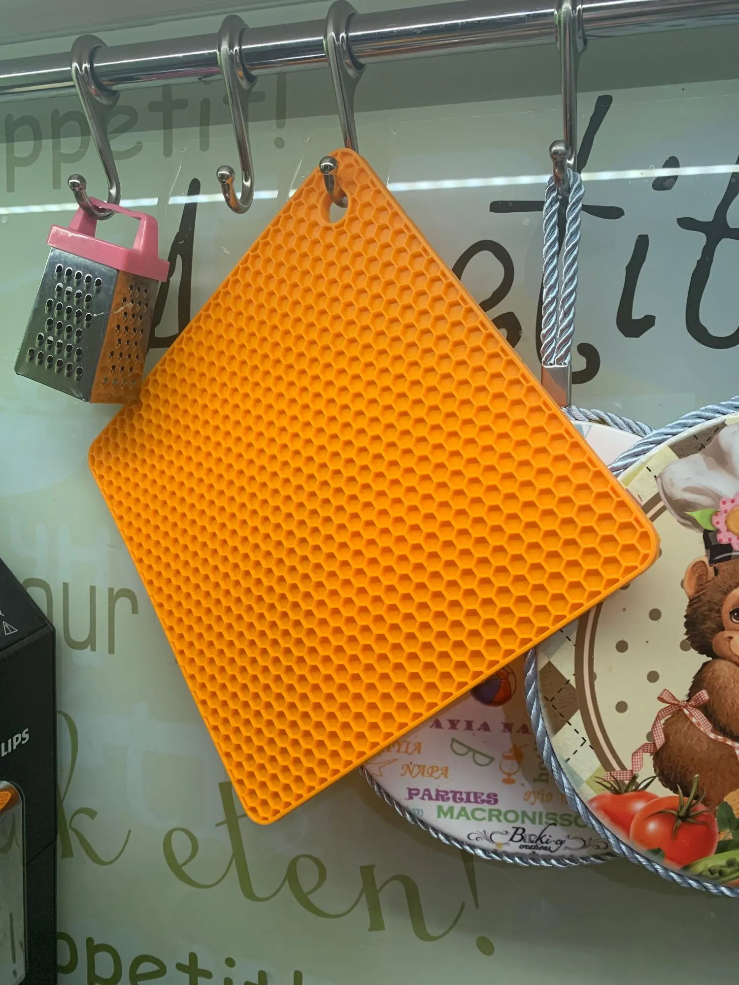 Тройка отличная, хорошо изолирует от жары, а также от холода. Полые шестигранники создают воздушную подушку, которая помогает силиконовой теплоизоляции. Форма очень красивая, цвет выглядит так же, как на экране. Это не хорошая идея, чтобы попробовать использовать его как держатель горшка, в этом случае он скользкий. Можно использовать только в качестве тривета. Продавец был чрезвычайно быстро отправлен товар, без упаковки, так как он бесполезен (товар может быть сдавлен, прессован или вытянут... Он изготовлен из силикона). Я очень доволен покупкой, и я думаю купить еще один.