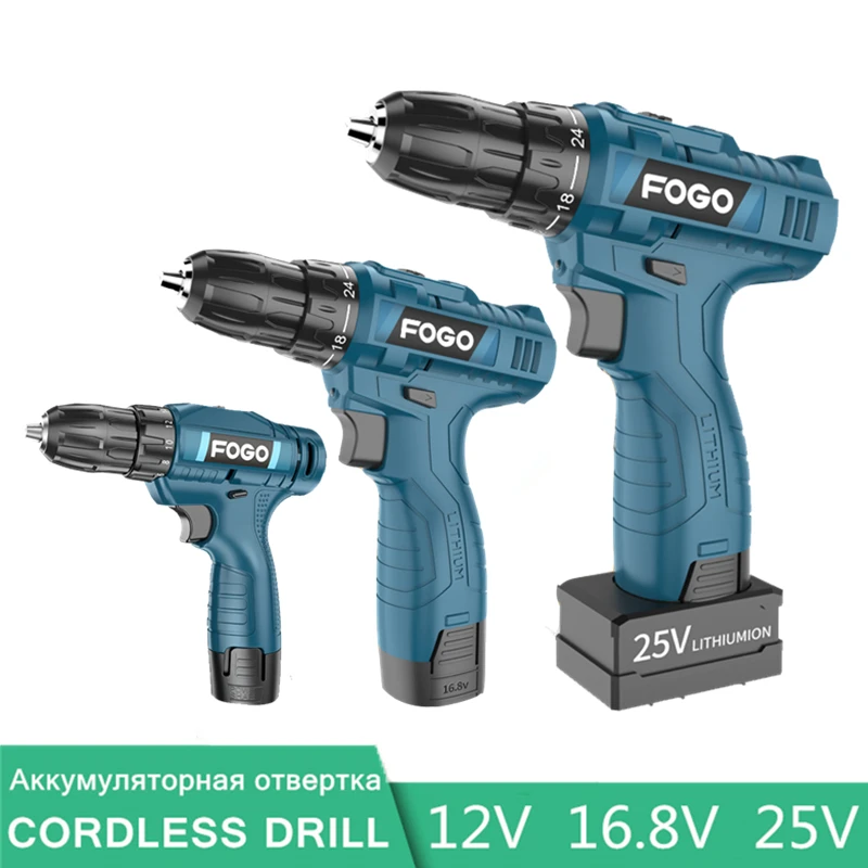 Аккумуляторная дрель, Электрическая отвертка с литий-ионным аккумулятором, 12 В, 16,8 в, 25 в