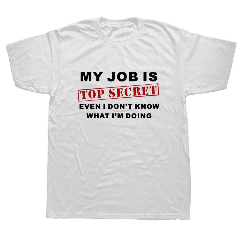 Футболка мужская с забавным рисунком MY work IS TOP SECRET, хлопковая Повседневная рубашка с коротким рукавом, с смешным рисунком, со слоганом смеха