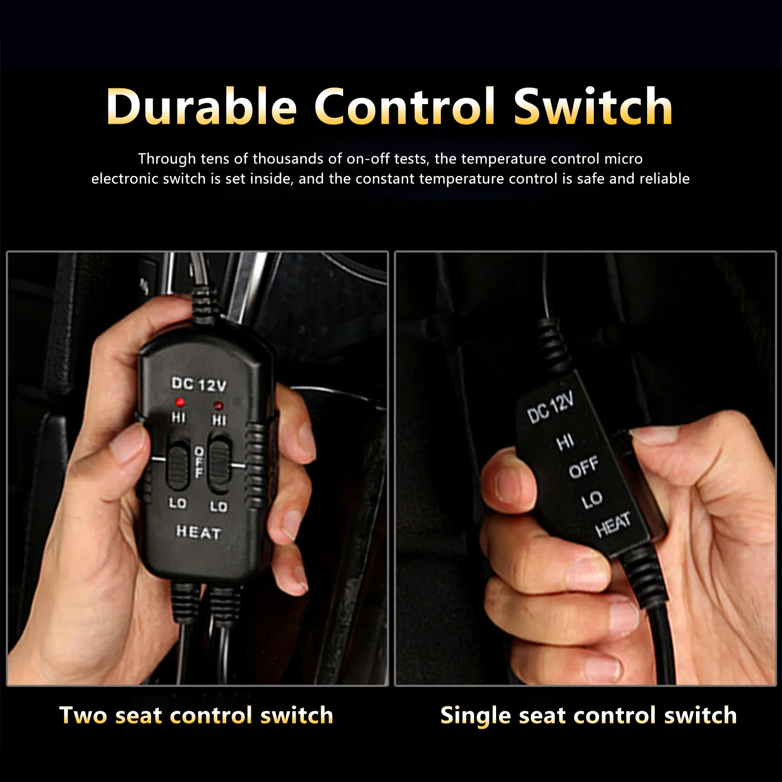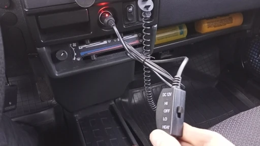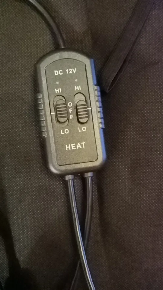 В работе ещё не проверял, но на ощупь качество хорошее. Брал комплект из 2-х нагревателей. С каждого выходит свой провод, дальше они объединяются в регуляторе, в котором у каждого нагревателя есть свой переключатель с тремя положениями - Lo, Hi, Off. После регулятора идёт один кабель до прикуривателя