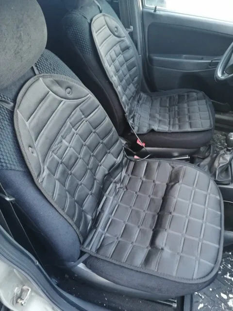 Нагревают хорошо-быстро, но качество резинок не очень, после 2го раза оторвались верхние крепящиеся к подголовнику, надо перешивать и доводить до ума. Посмотрим на сколько времени хватит