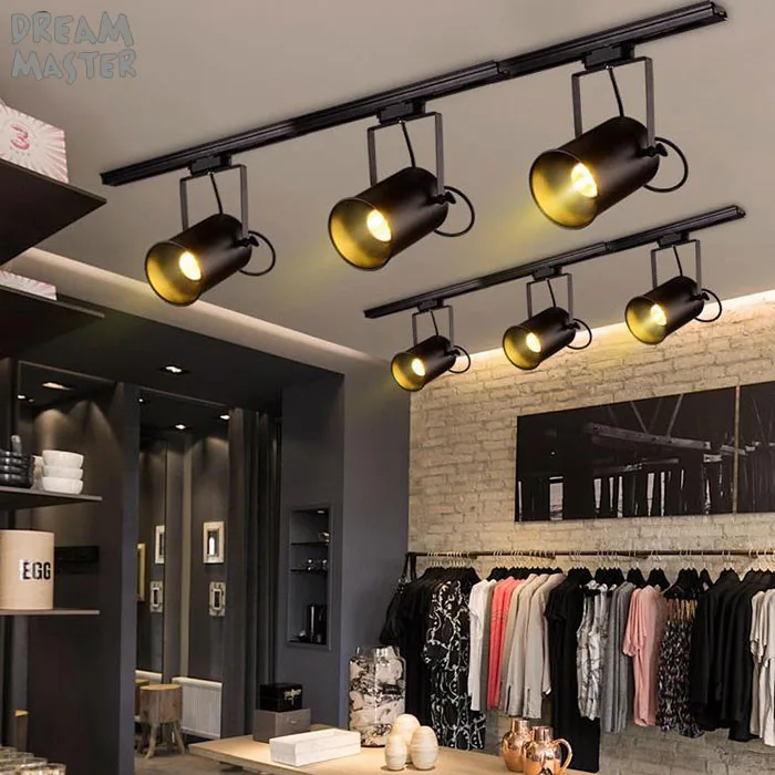 Промышленные винтажные светильники черного цвета в стиле лофт, американские светильники, E27, для одежды, бара, магазина, потолочного освещения, 1-фазный рельсовый светильник