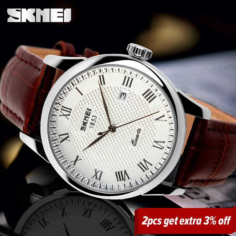 SKMEI Для мужчин Кварцевые наручные часы Элитный бренд кожа Повседневное модные Бизнес часы Для мужчин часы Водонепроницаемый Relogio masculino 9058