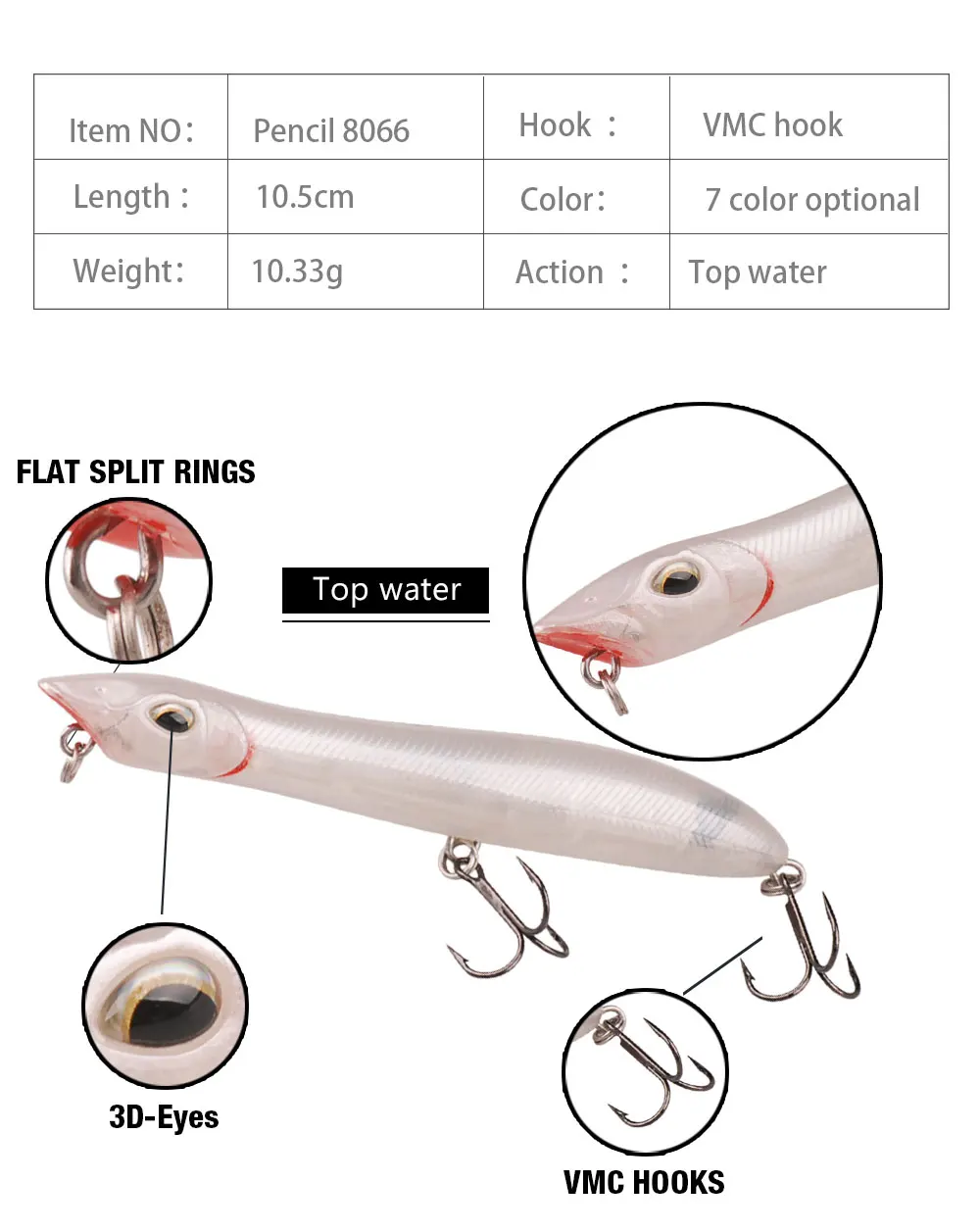 Умная приманка для рыбной ловли, 105 мм, 10,33 г, приманка-карандаш для Seabass Isca, искусственная приманка для рыбалки, рыболовная снасть